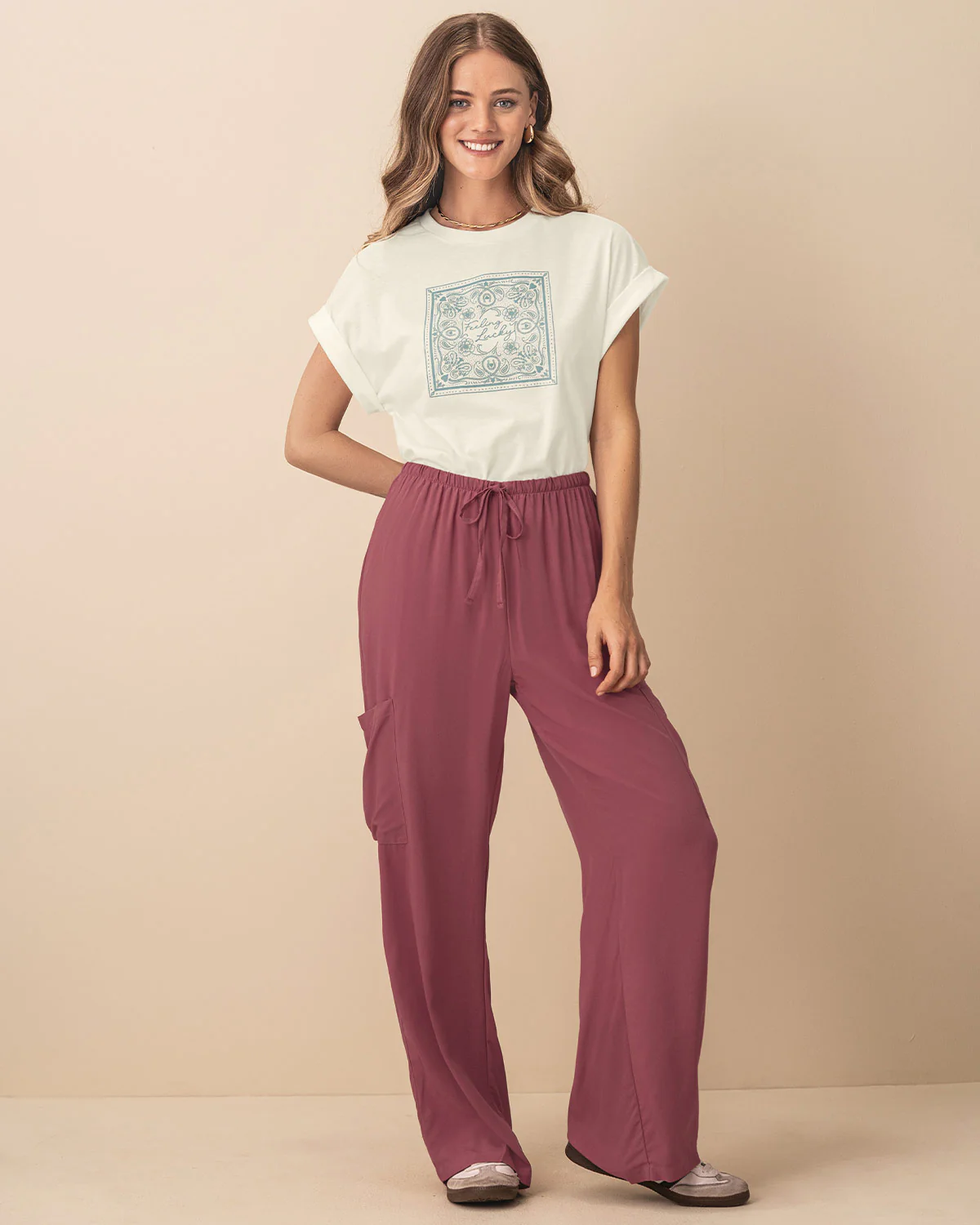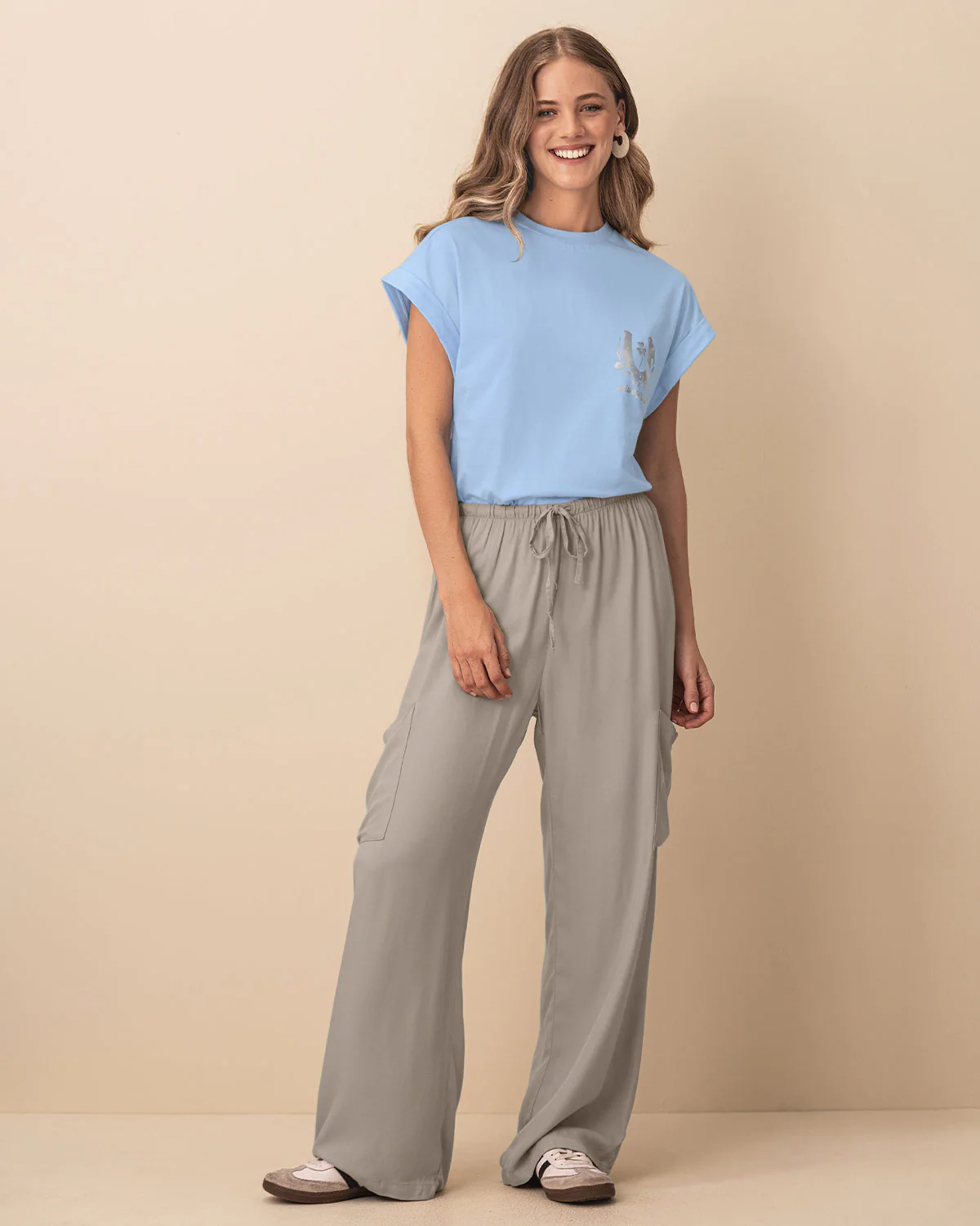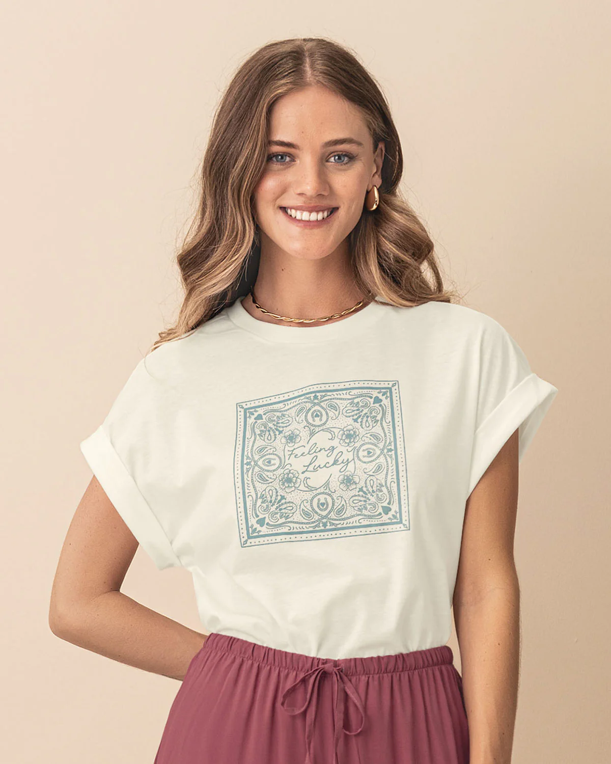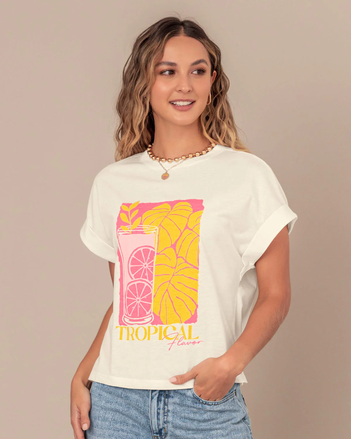 ¡El diseño que combina con todo! Esta camiseta con estampado en el frente es una básica renovada que no solo te va a dar comodidad, sino también estilo sin esfuerzo. Combínala con prendas superiores llamativas y llena tus días de moda.