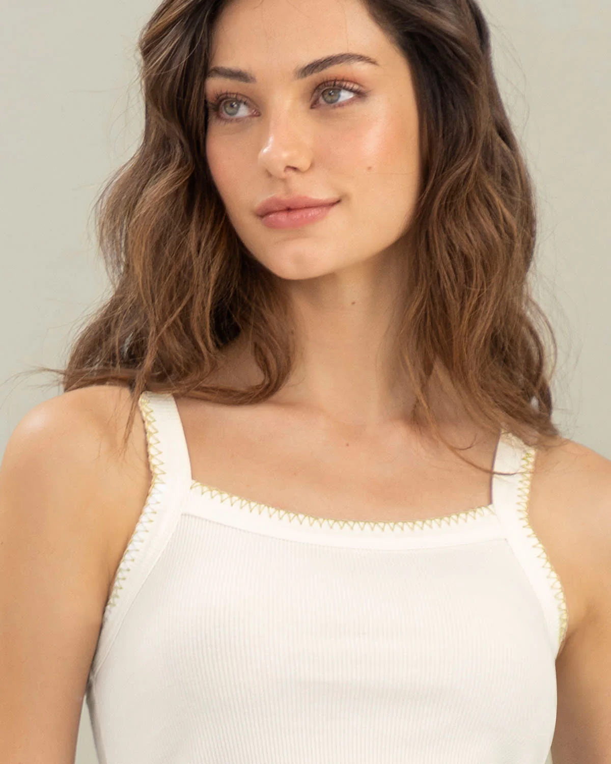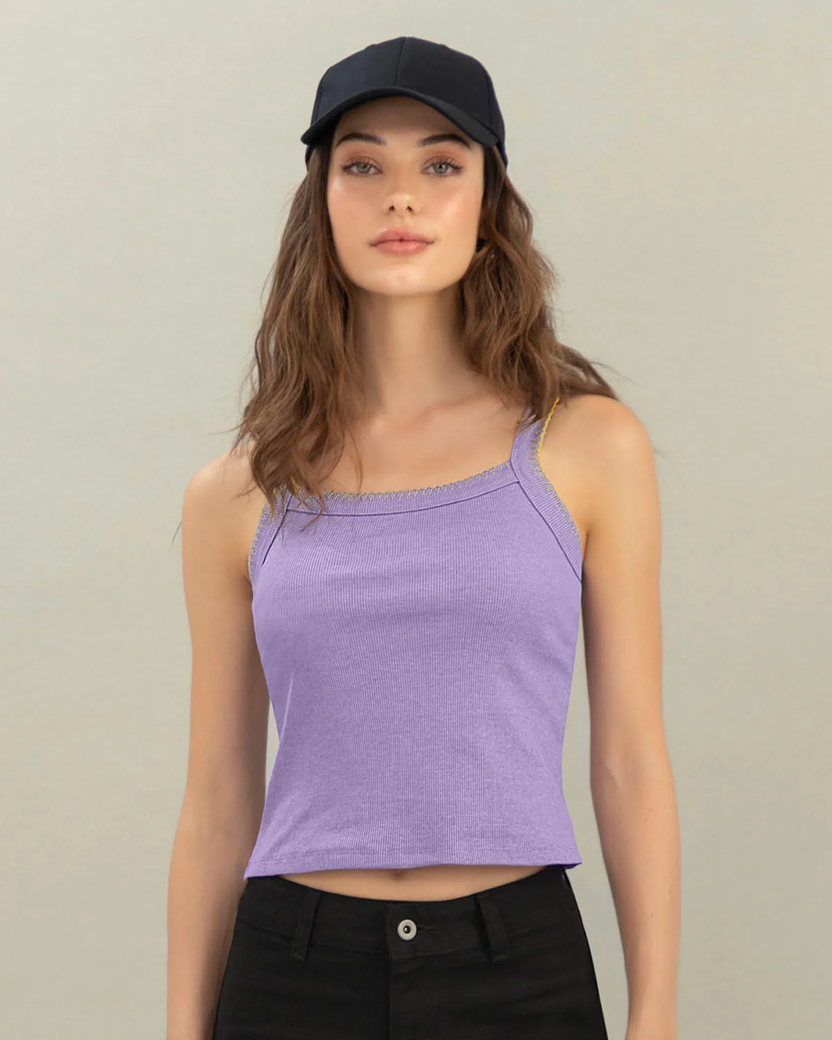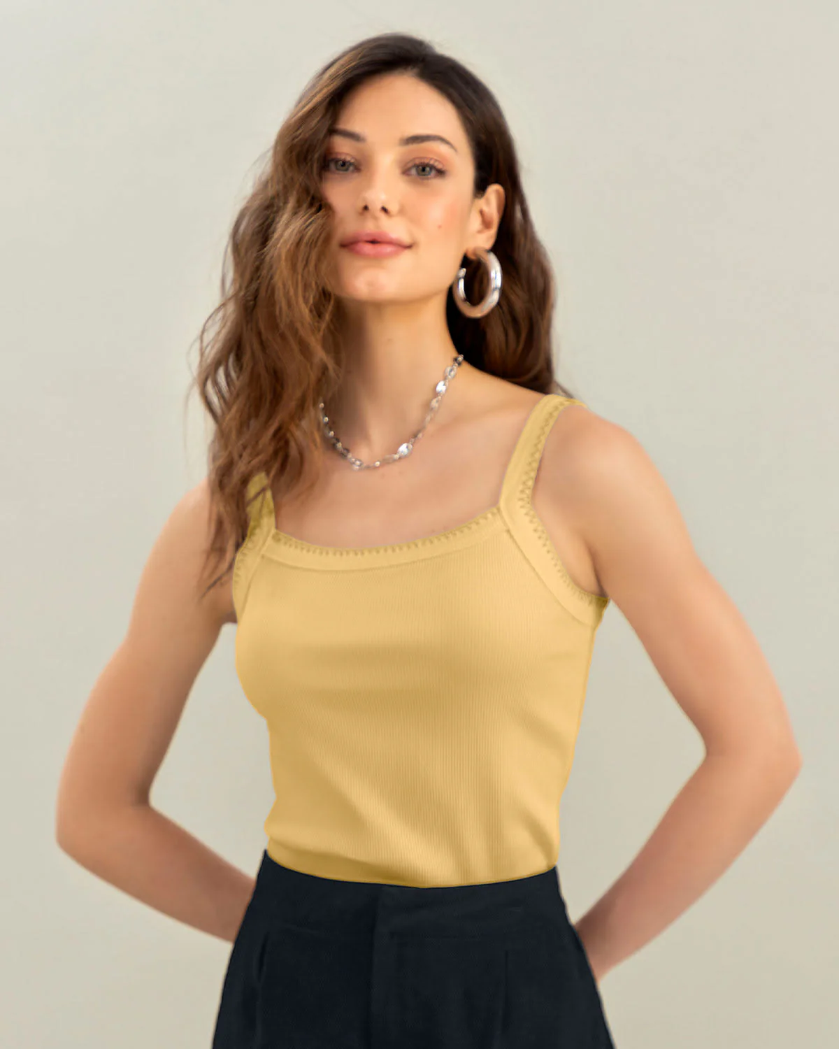 ¡Una básica con un toque renovado! Esta camiseta de tiritas con detalle tejido en frente te va a encantar y vas a usarla en todos tus looks. Una prenda esencial y multipropósito siempre debe estar en tus looks. ¡Úsala para crear tus mejores looks por capas!