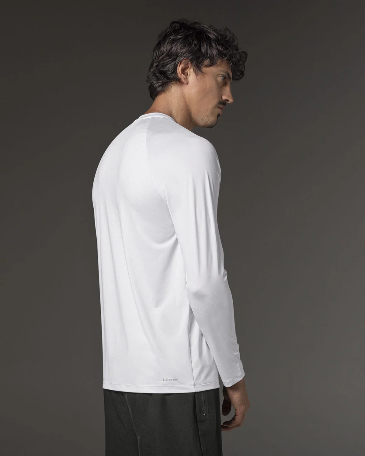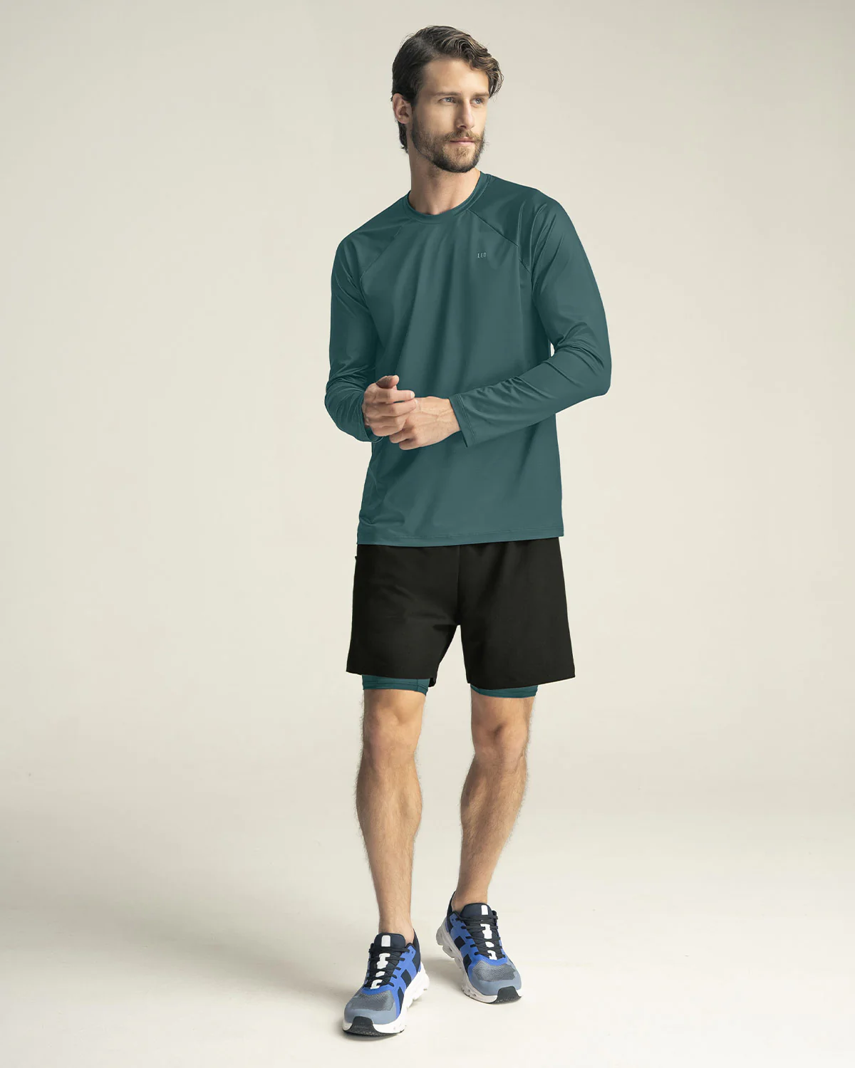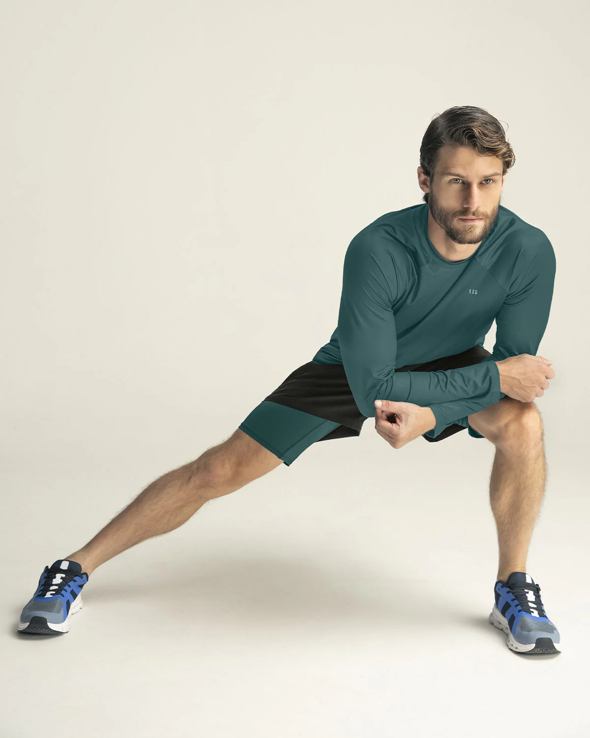 Esta camiseta deportiva manga larga es ideal para entrenar al aire libre, ya que te protege del frío o del sol (bloquea más del 98% de los rayos UVA y UVB). Además, cuenta con un acabado antibacterial que evita la proliferación de bacterias que causan el mal olor. Es amplia, cómoda y ligera y te mantiene fresco durante tus rutinas deportivas.