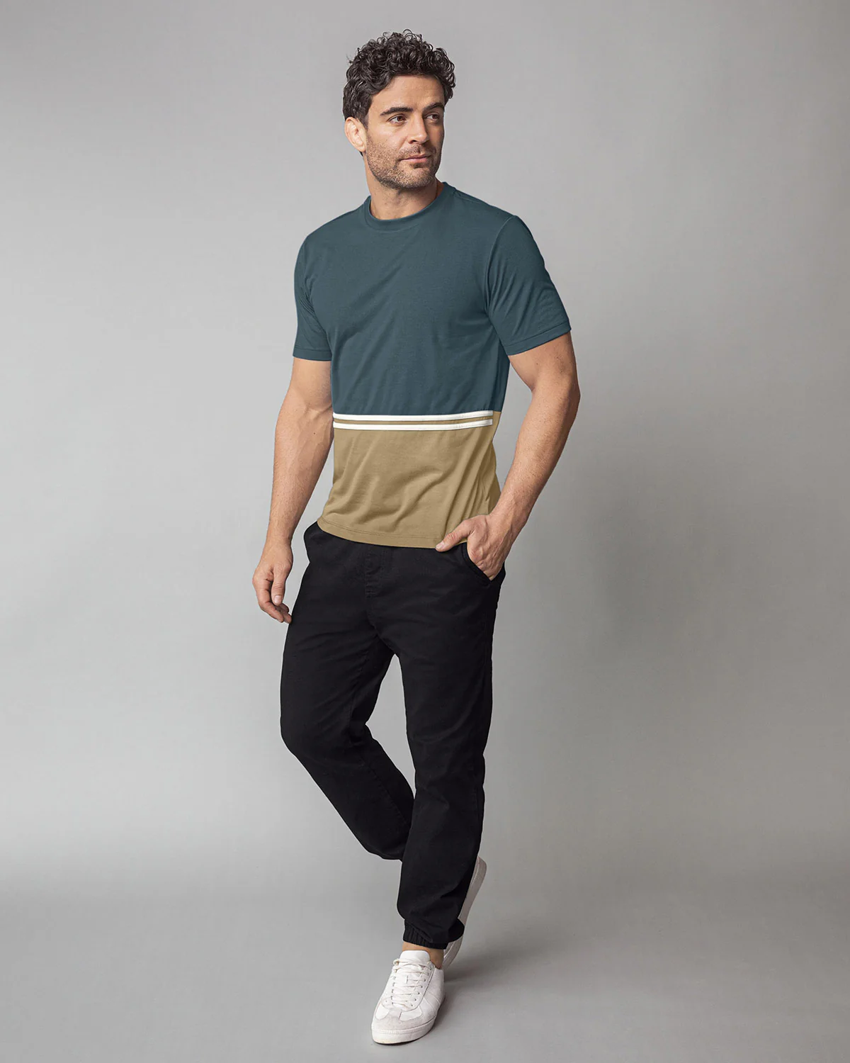 Los días casuales también pueden verse muy cool, con esta camiseta manga corta con bloque de color. Es una nueva esencial que le dará un look renovado a tus outfits del día a día. Úsala con unos jeans o joggers según la ocasión.