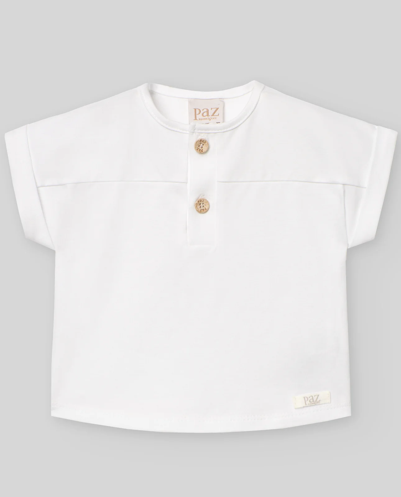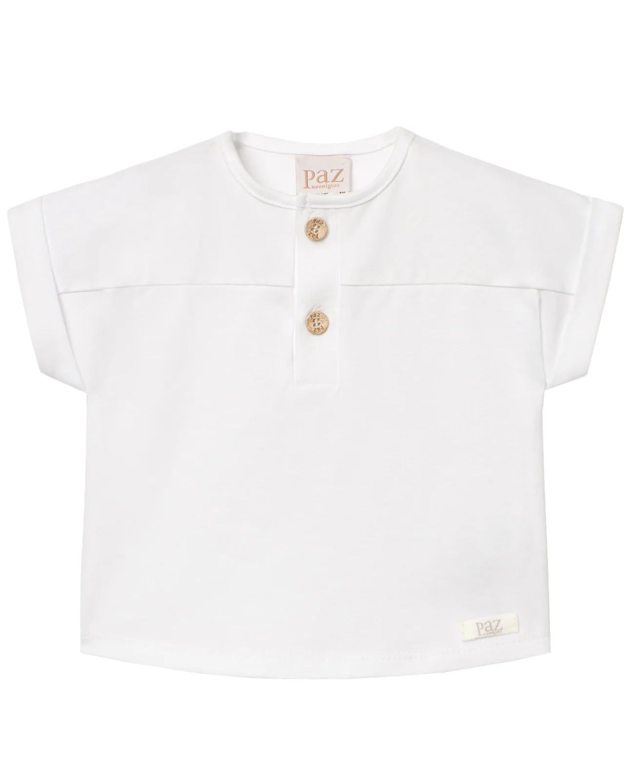 Camiseta de manga corta para niño. Botonadura central con trabilla. Manga vuelta. Ideal para combinar con todos sus looks.