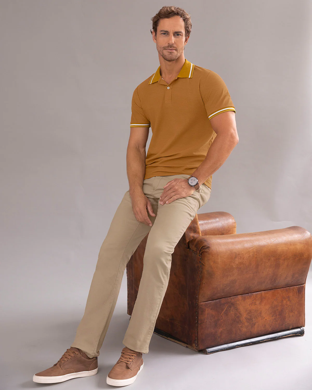 Tu camiseta tipo polo clásica, llevada a otro nivel. Su cuello y mangas con tejido texturizado elevan tus looks. Además, es una prenda cómoda y muy versátil, lo que la hace la aliada perfecta para combinar con jeans o pantalones y verte impecable siempre.