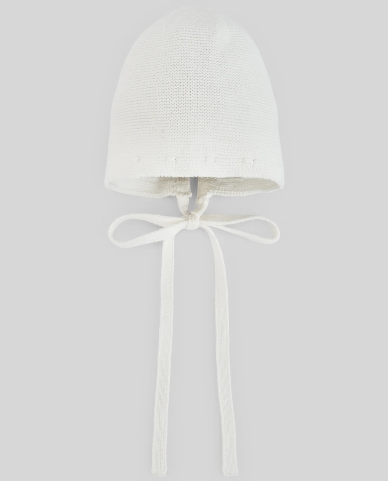 Capota de punto lisa con lazo para ajustar, ideal para completar los conjuntos de la colección Paz.