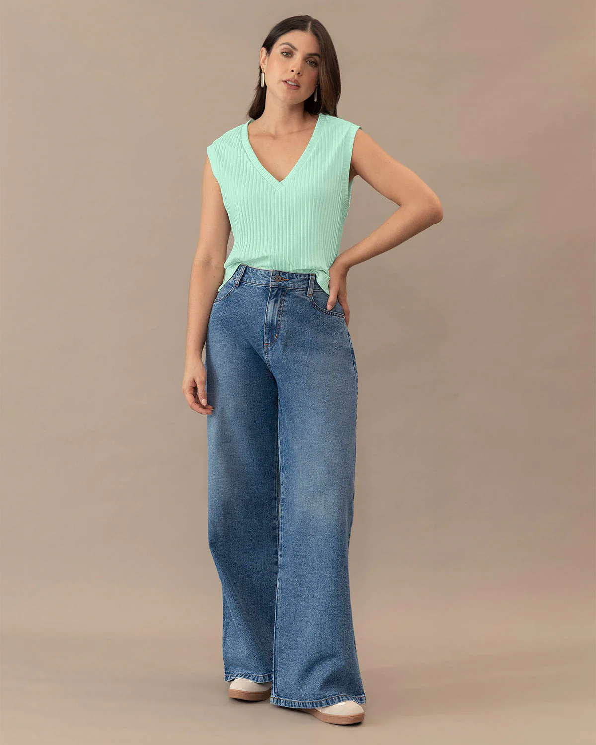 Este chaleco manga sisa, con escote en V es una prenda perfecta para usar en capas o sola. Tiene una silueta cuadrada que hace que sea muy cómodo. Además tiene aberturas laterales que le dan un detalle especial. Y ¿por qué lo amamos? Porque está elaborado en tela acanalada stretch y es una prenda versátil que puedes usar en cualquier temporada del año.