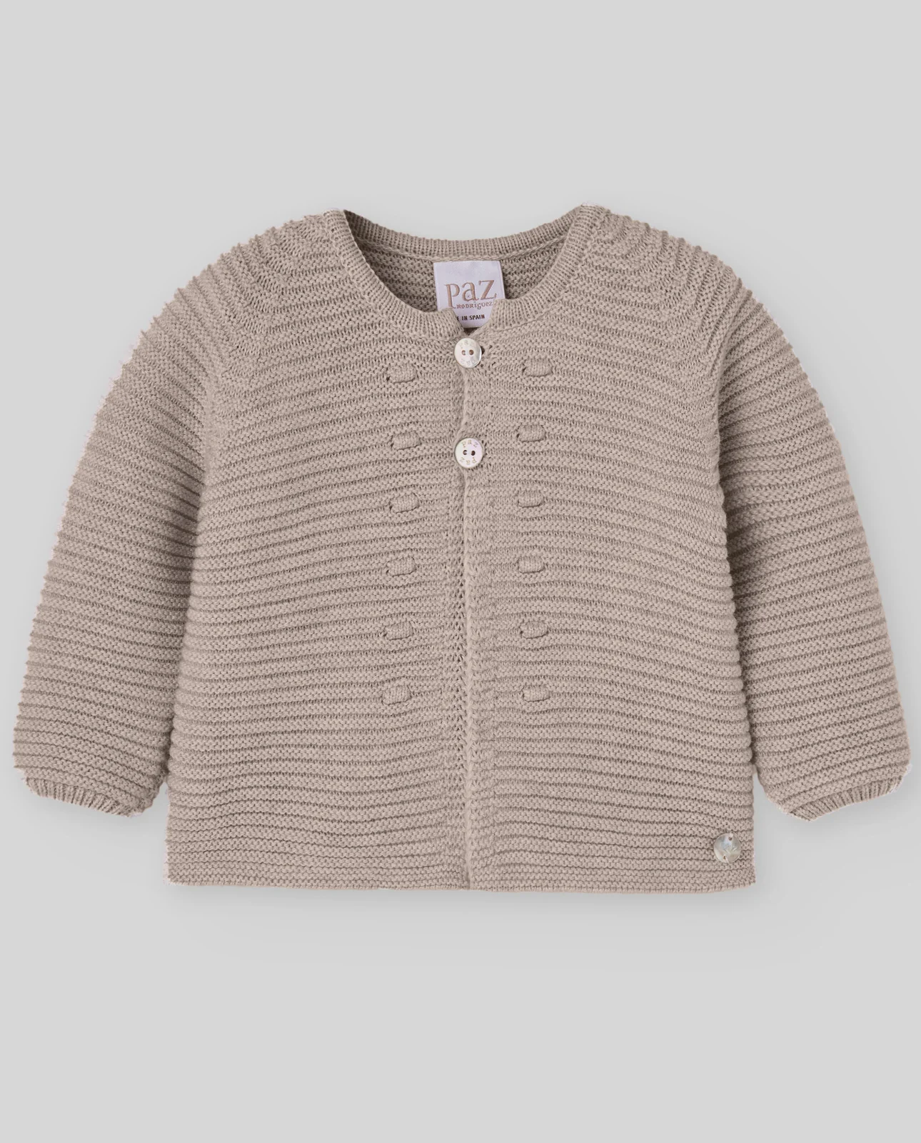 Chaqueta unisex confeccionada en algodón cashmere, doblelinks con bollos al tono en delantero, manga ranglam y cierre con botón de nacar. Placa personalizada.