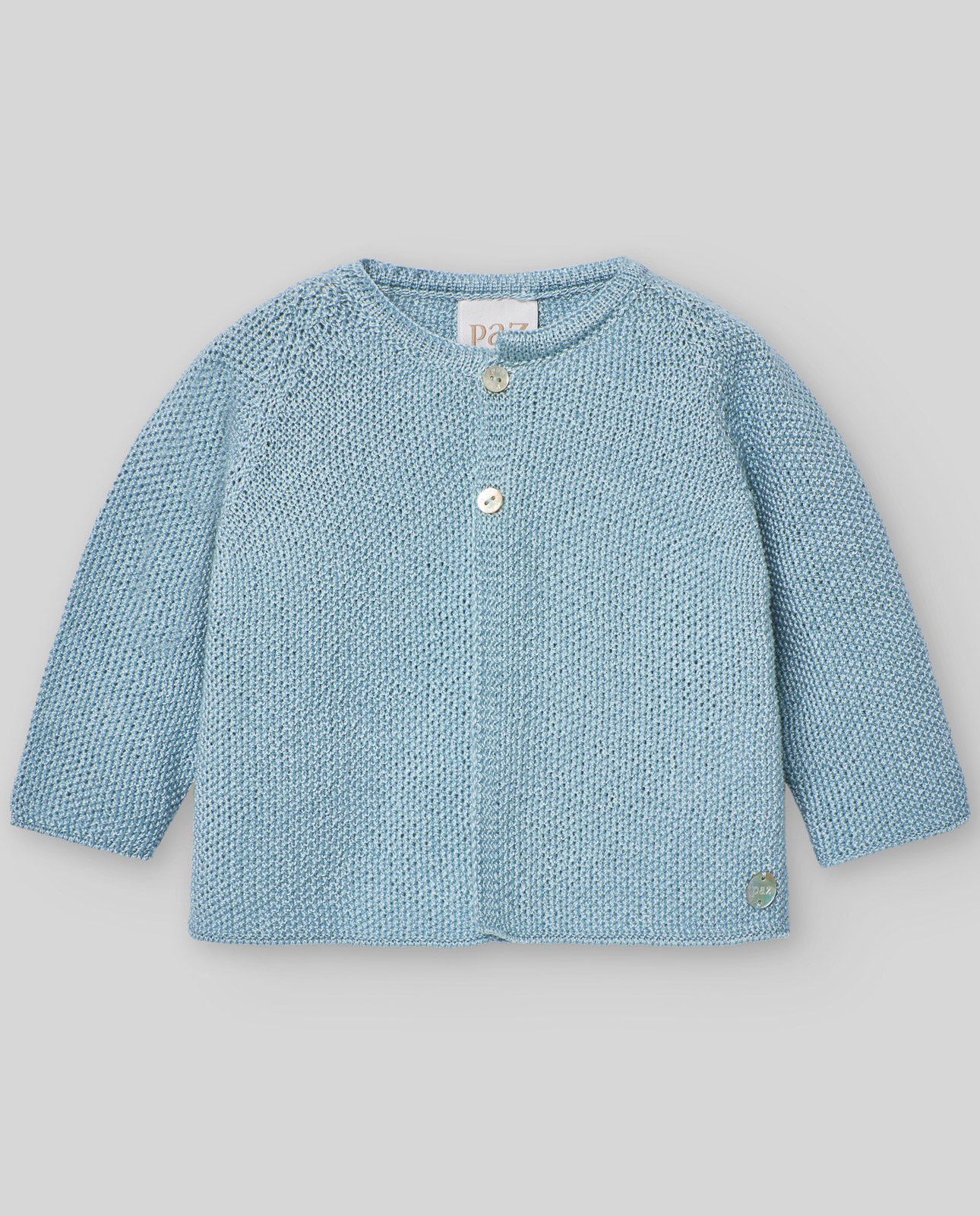 Chaqueta larga unisex con dos botones de nácar en la parte superior.