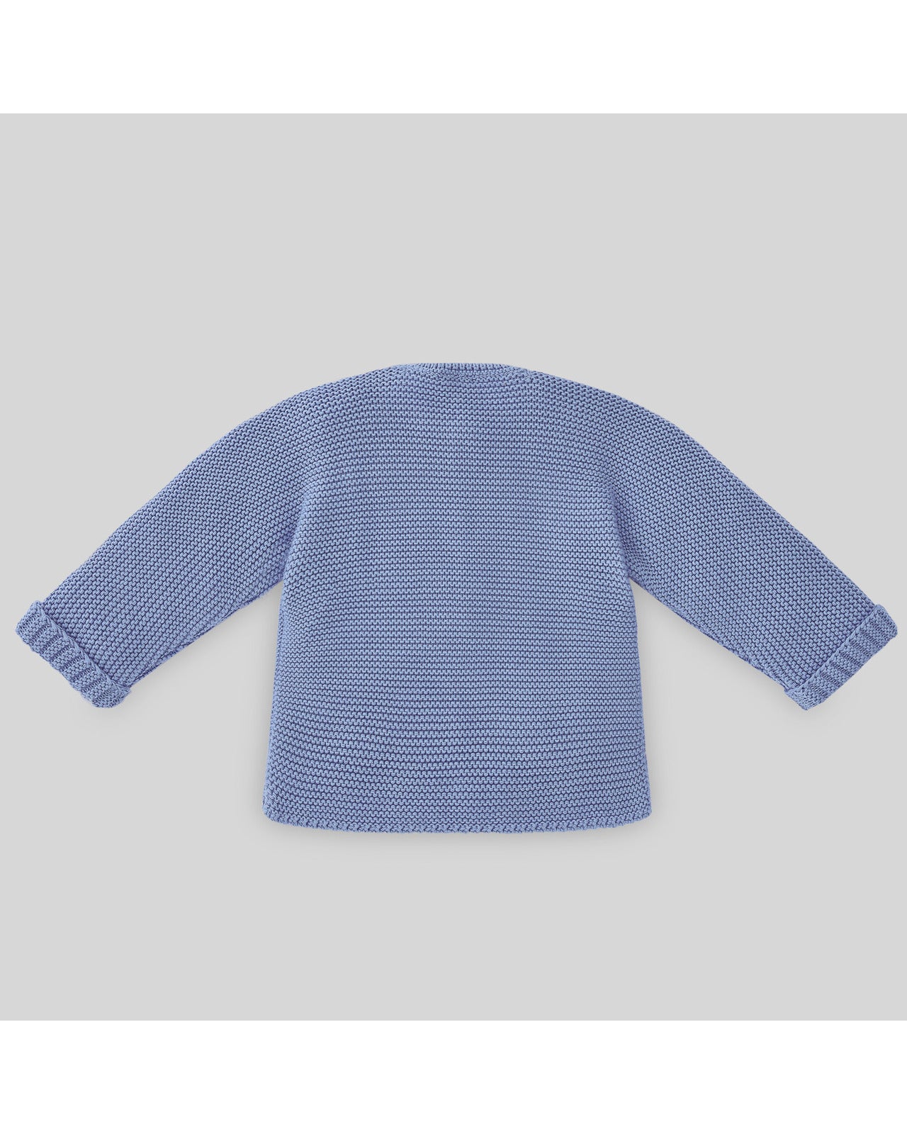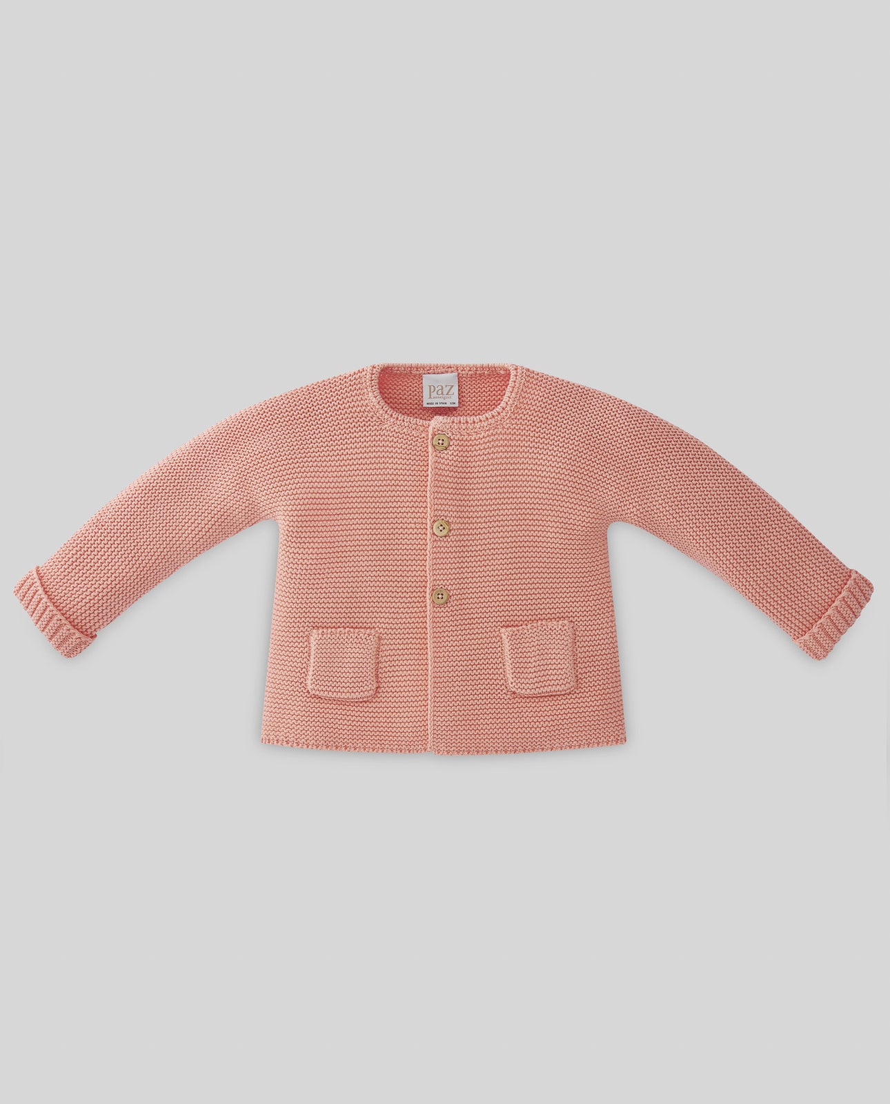 Chaquetón de punto con bolsillos y dobladillo en mangas. Abertura delantera con botones de madera.