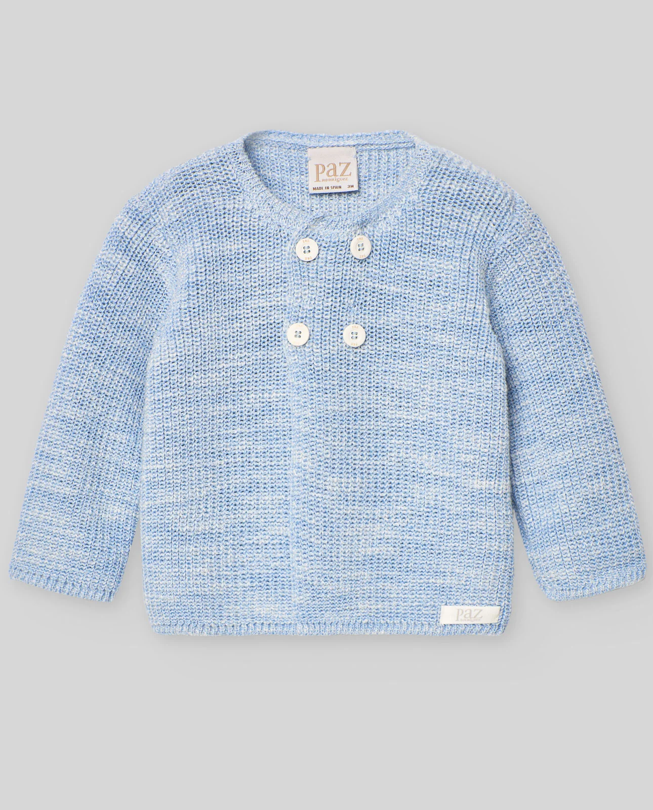 Chaqueta de punto vigoré con doble botonadura y remates en canalé.