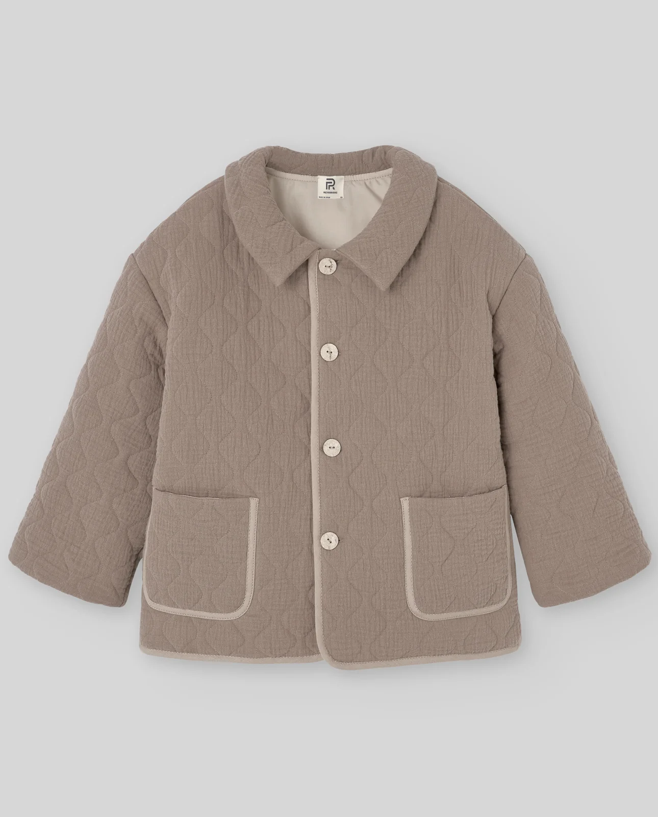 Chaqueta acolchada de corte oversize y vivos a contraste. Cuello solapa y manga larga. Bolsillos de plastrón en cadera y cierre frontal con botones.