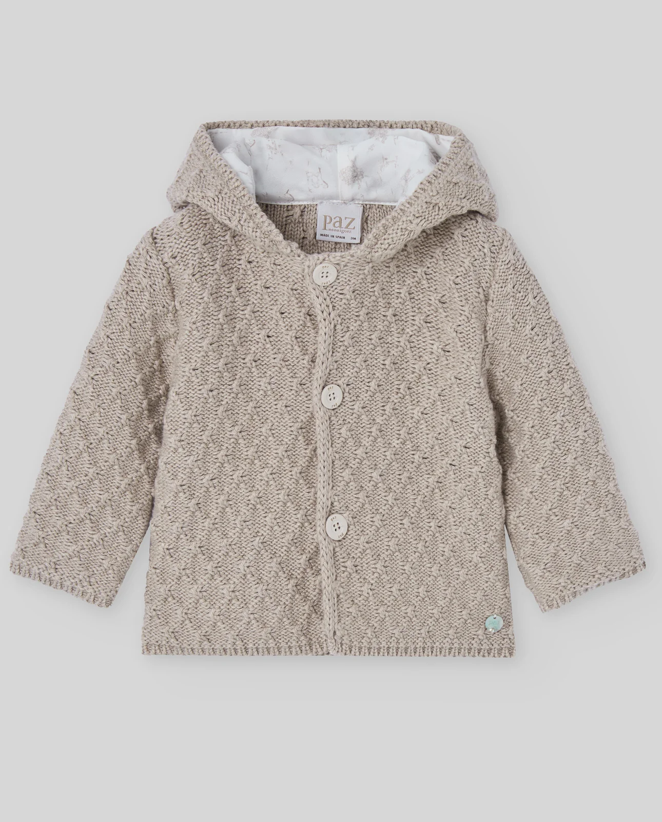 Chaquetón de punto en mezcla de algodón y cashmere, con capucha y pompón, suave y confortable para los días más frescos.