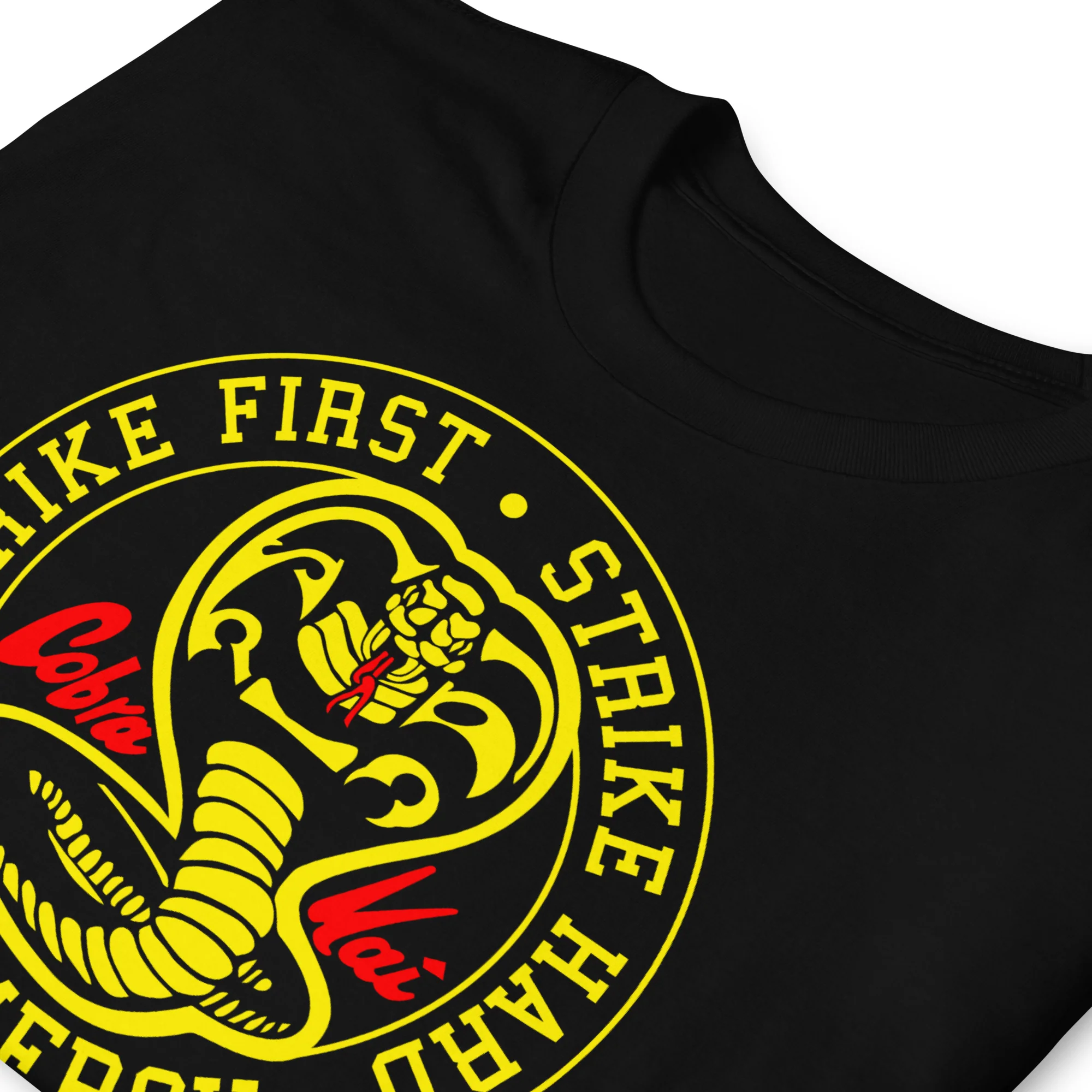 Disciplina, poder y actitud sin concesiones. Esta camiseta revive el espíritu de Cobra Kai, el dojo más temido del Valle con un diseño icónico que combina fuerza visual y energía retro.