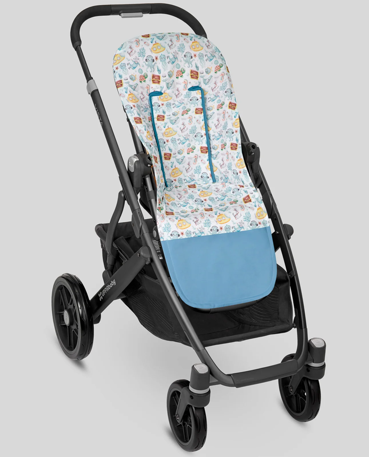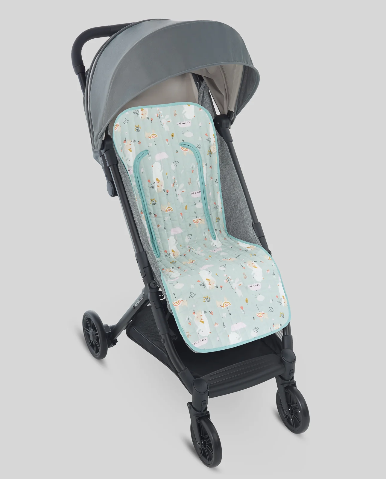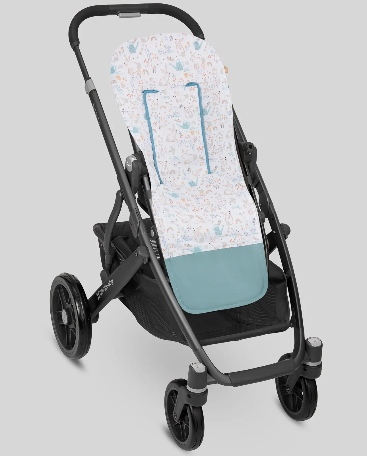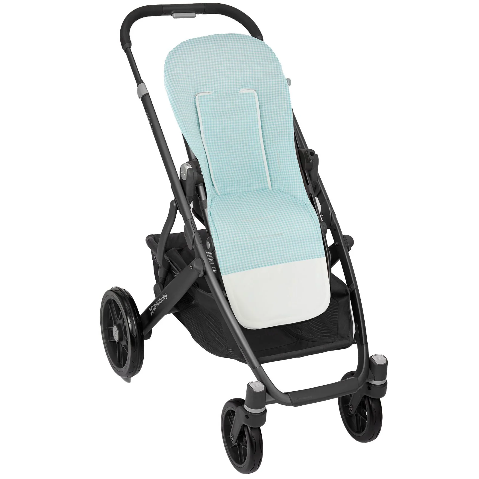 Colchoneta estrecha reversible para sillas ligeras o de formato estrecho confeccionada de popelín algodón estampados combinados.