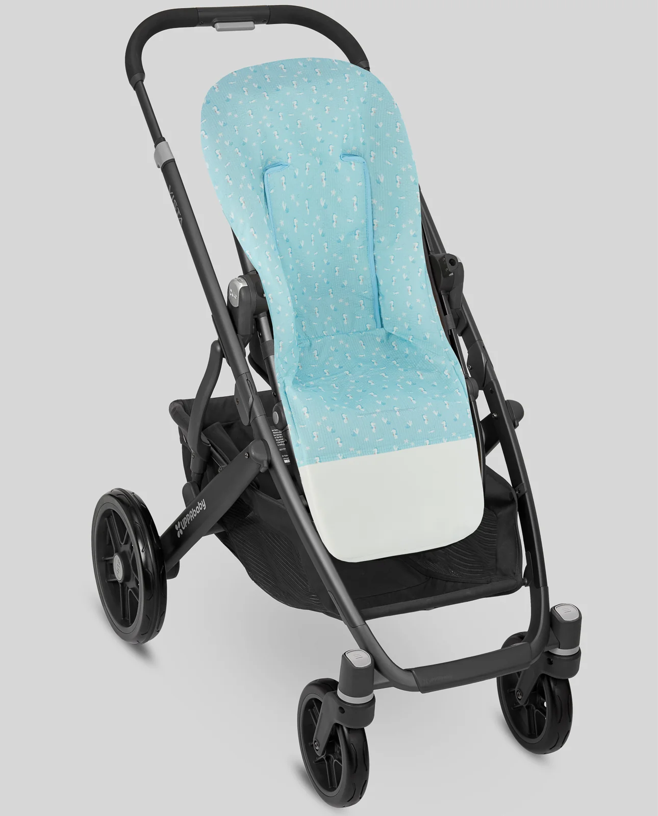 Colchoneta estrecha para sillas ligeras o de formato estrecho confeccionada en tejido bambula de estampado marino. Refuerzo de polipiel en los pies.