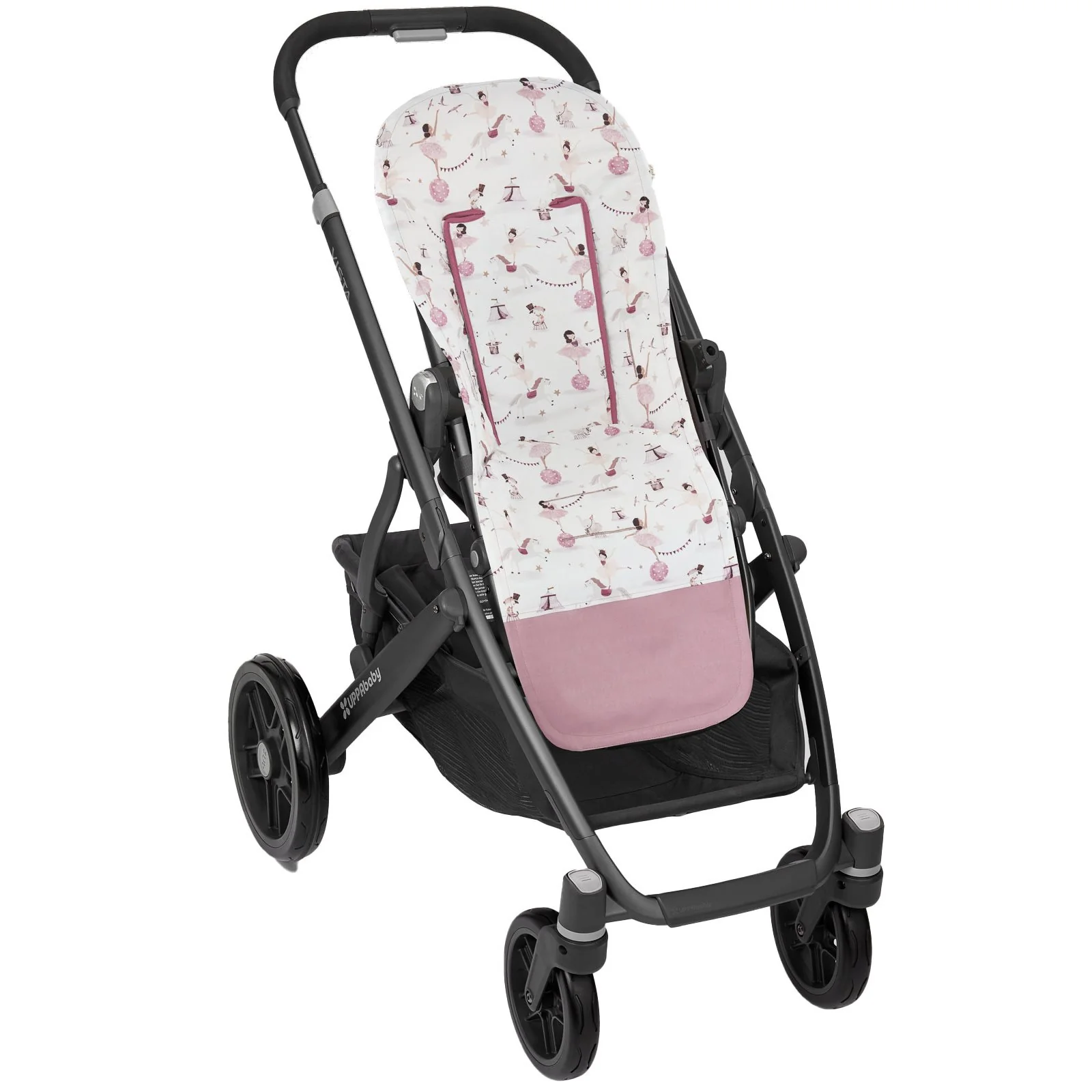 Colchoneta estrecha para sillas ligeras o de formato estrecho confeccionada en tejido popqlin de estampado bailarinas. Refuerzo de polipiel en los pies.