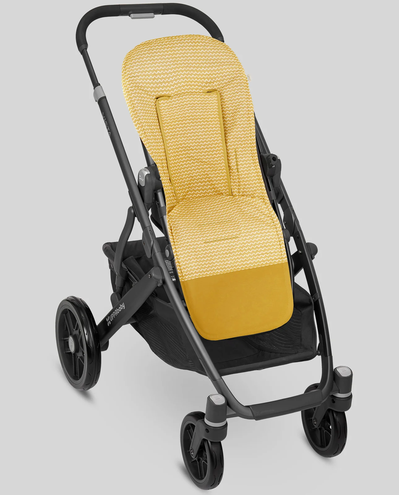 Colchoneta estrecha para sillas ligeras o de formato estrecho confeccionada en tejido bambuña de estampado olas. Refuerzo de polipiel en los pies.
