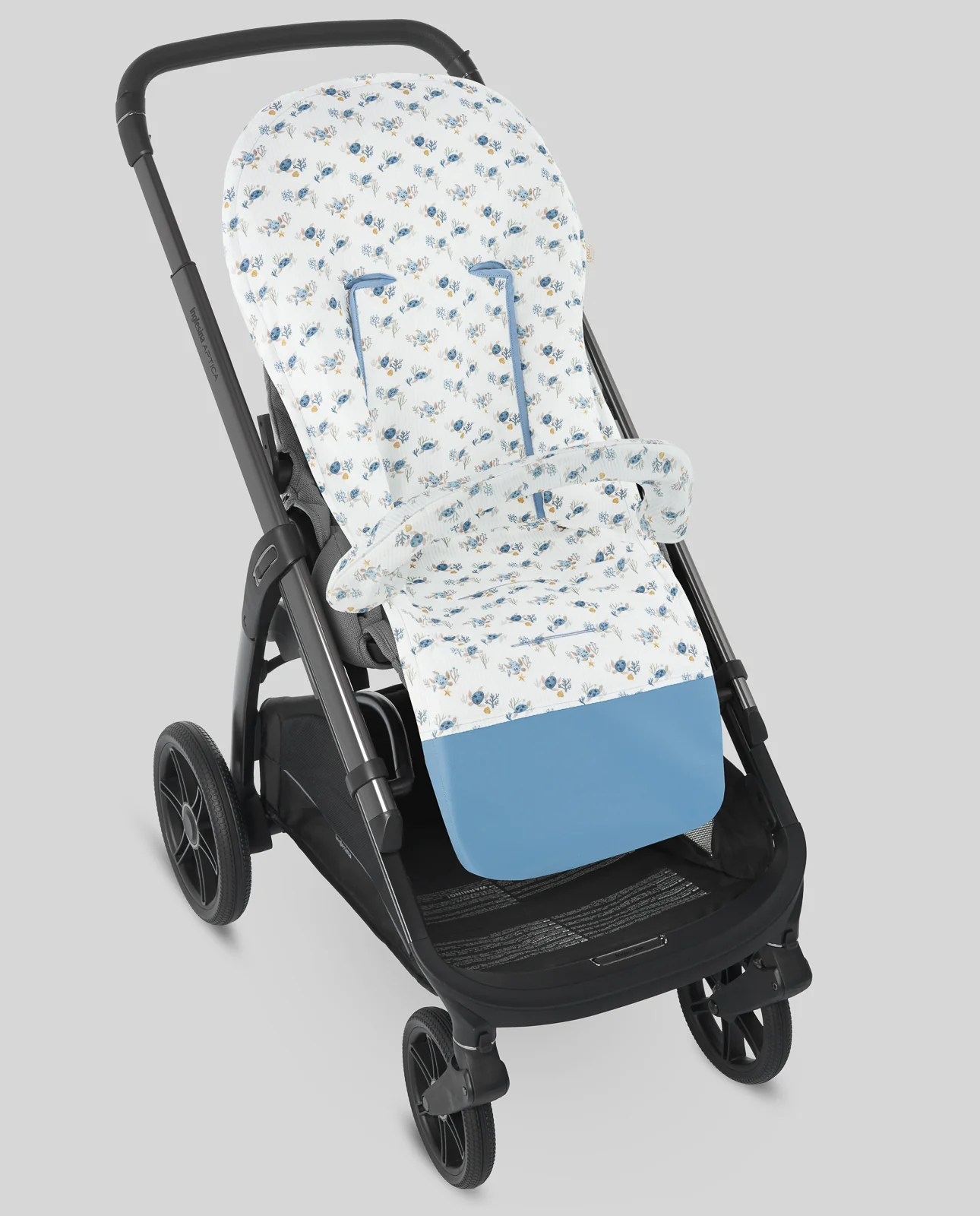 Colchoneta para sillas de paseo confeccionada en bambula de estampado tortugas. Cubre barra a juego y refuerzo de polipiel en los pies.