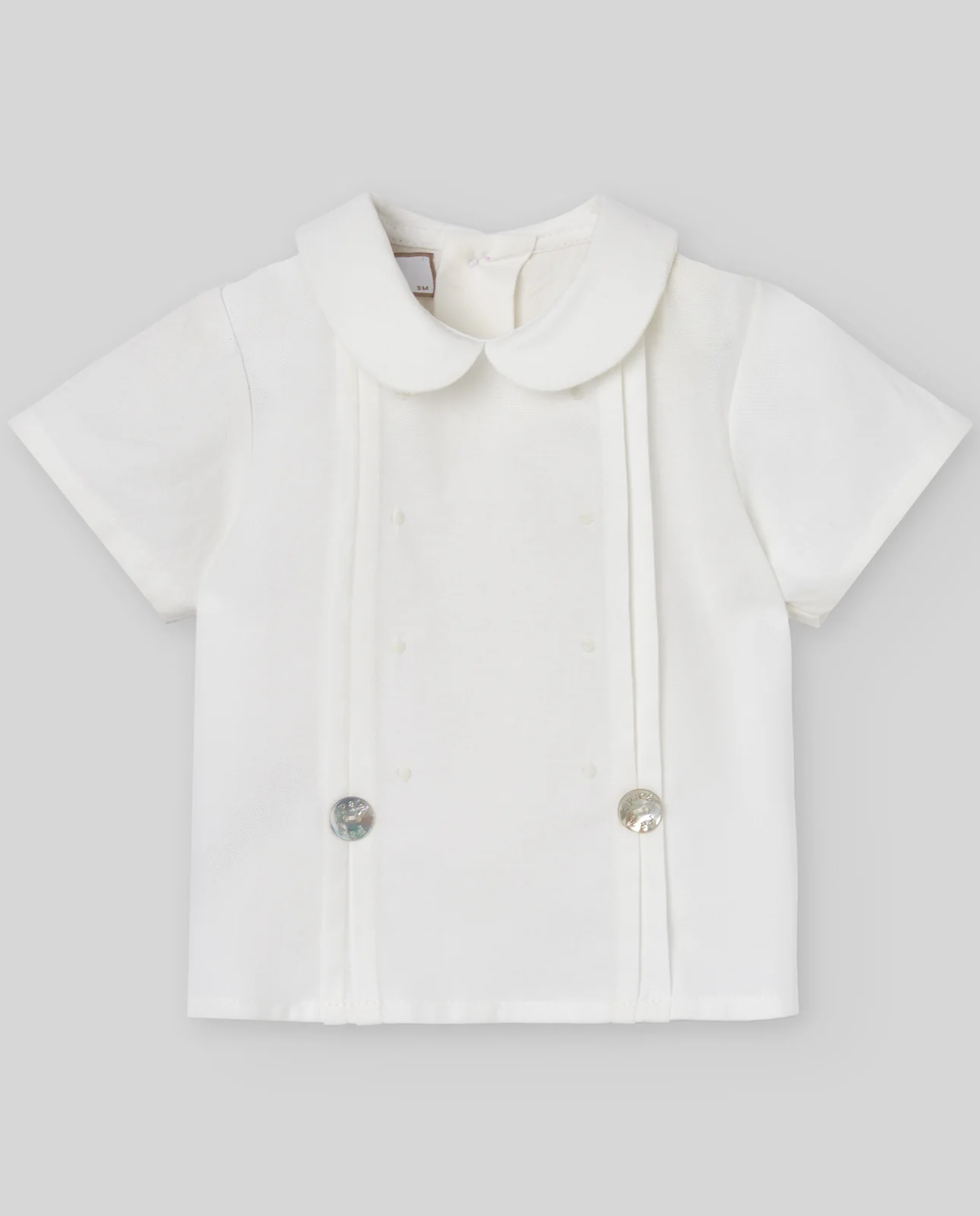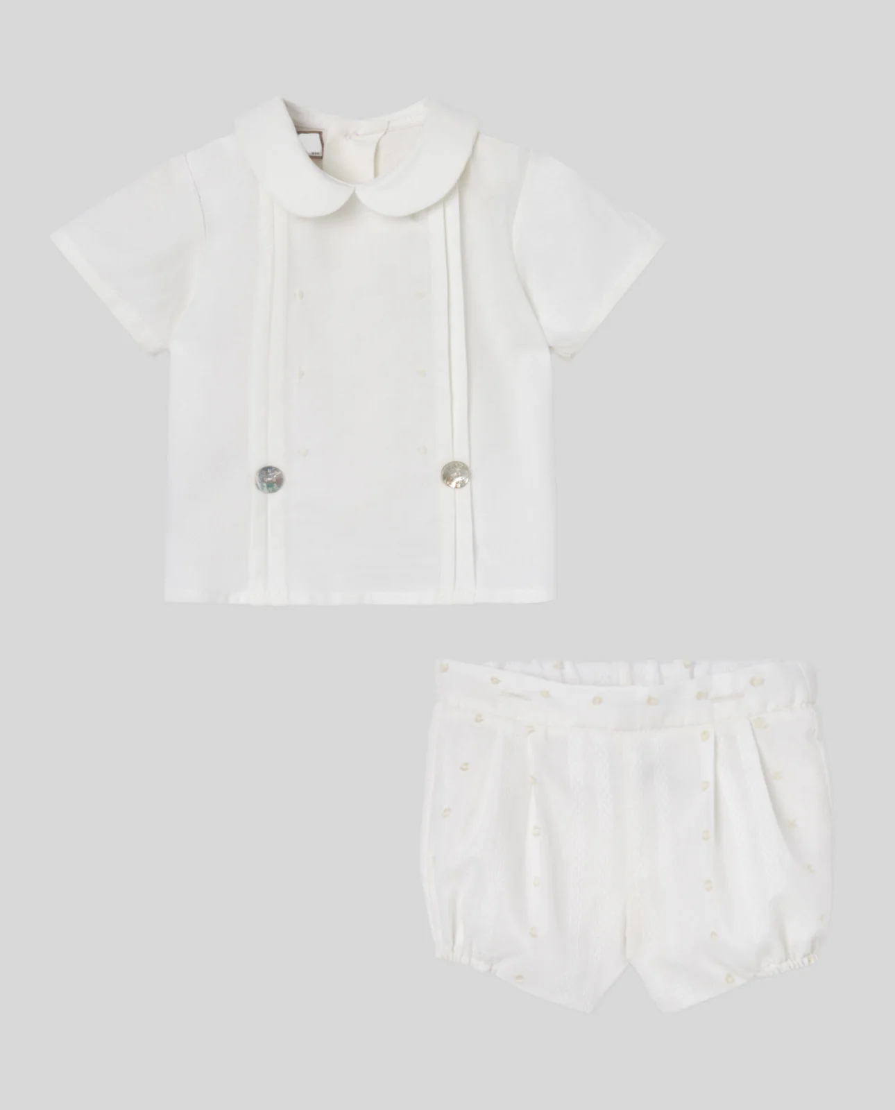 Conjunto de blusa y pantalón de la colección «Paz». En lino y algodón con bordado delicado, una opción clásica y elegante para ceremonias o eventos formales.