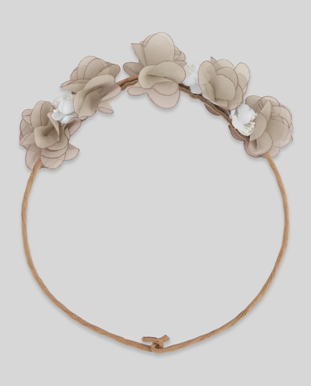Elegante diadema de flores de la colección Ceremonia. Elaborada con delicadas flores de tela sobre una base flexible, es el complemento perfecto para completar los conjuntos más especiales. Aporta un toque romántico y sofisticado, ideal para combinar con vestidos de arras, bautizo o comunión. Diseñada para ofrecer comodidad y sujeción suave, esta diadema se adapta perfectamente a la cabeza sin presionar, convirtiéndose en el accesorio ideal para las niñas en sus grandes ocasiones.