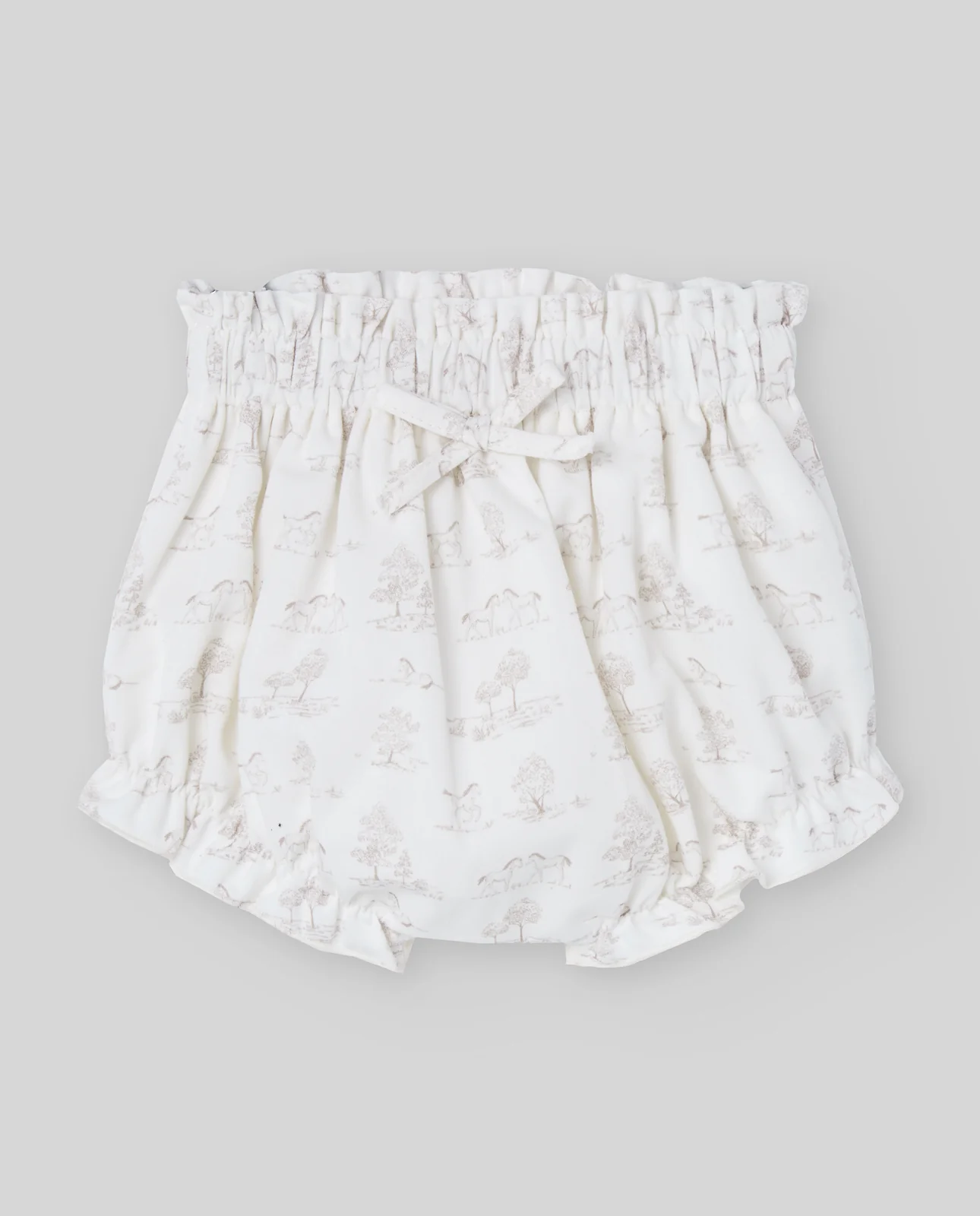 Cubrepañal con estampado floral y diseño abullonado. La cintura fruncida aporta un ajuste cómodo y favorecedor, perfecto para completar looks de temporada con personalidad.