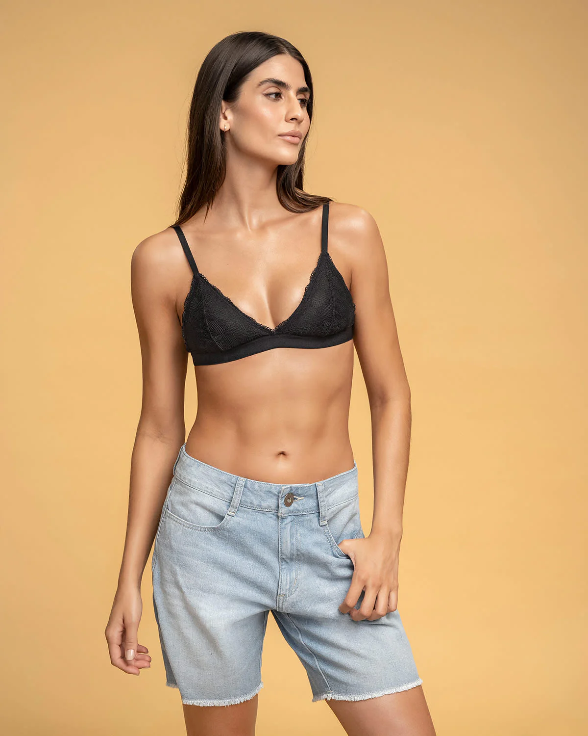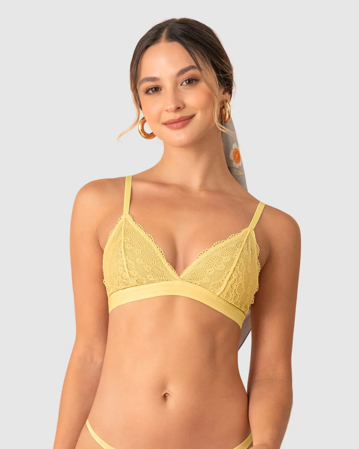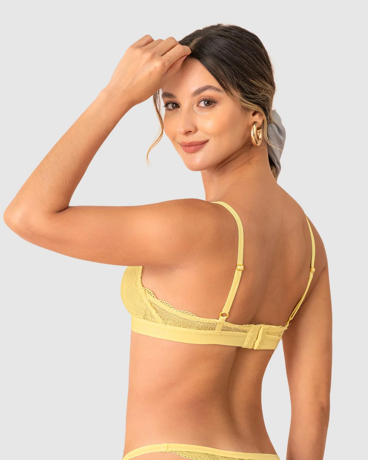 Si te encanta sentirte libre y cómoda con la ropa interior que usas, este bralette es perfecto para usarlo todos los días. No tiene arcos ni varillas, es liviano, ligero y su material elástico se ajusta a tu cuerpo. Sus cargaderas no removibles, son ajustables para que las adaptes a tu contorno. Sus copas cuentan con doble capa de tela: encaje externo + tul interno que funciona como un bolsillo si quieres ponerle copas en espuma (no incluidas)
