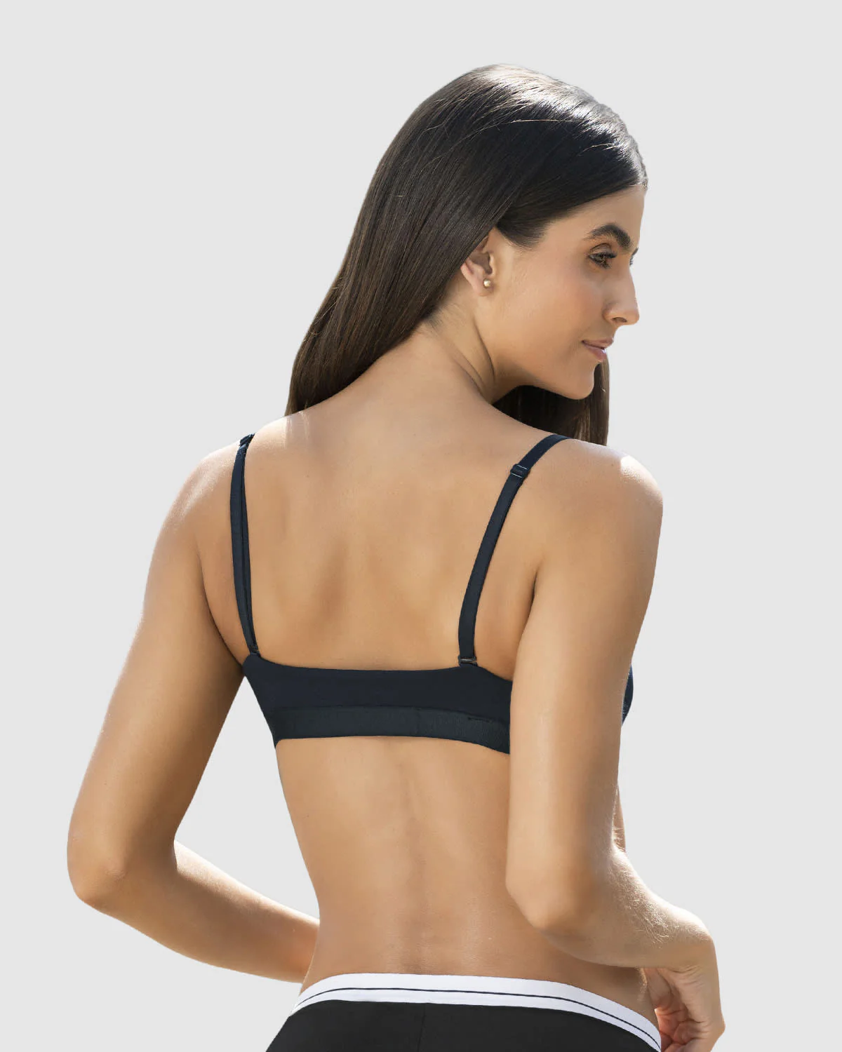 Este top es muy liviano y está libre de arcos, espumas o varillas: si buscas comodidad y ligereza ¡encontraste tu match perfecto! La abertura en el centro del busto es el detalle más diferenciador y único, es cool, sexy y perfecto para mostrarlo también con tu ropa exterior. Sus cargaderas son graduables para que lo uses de forma convencional o cruzada.