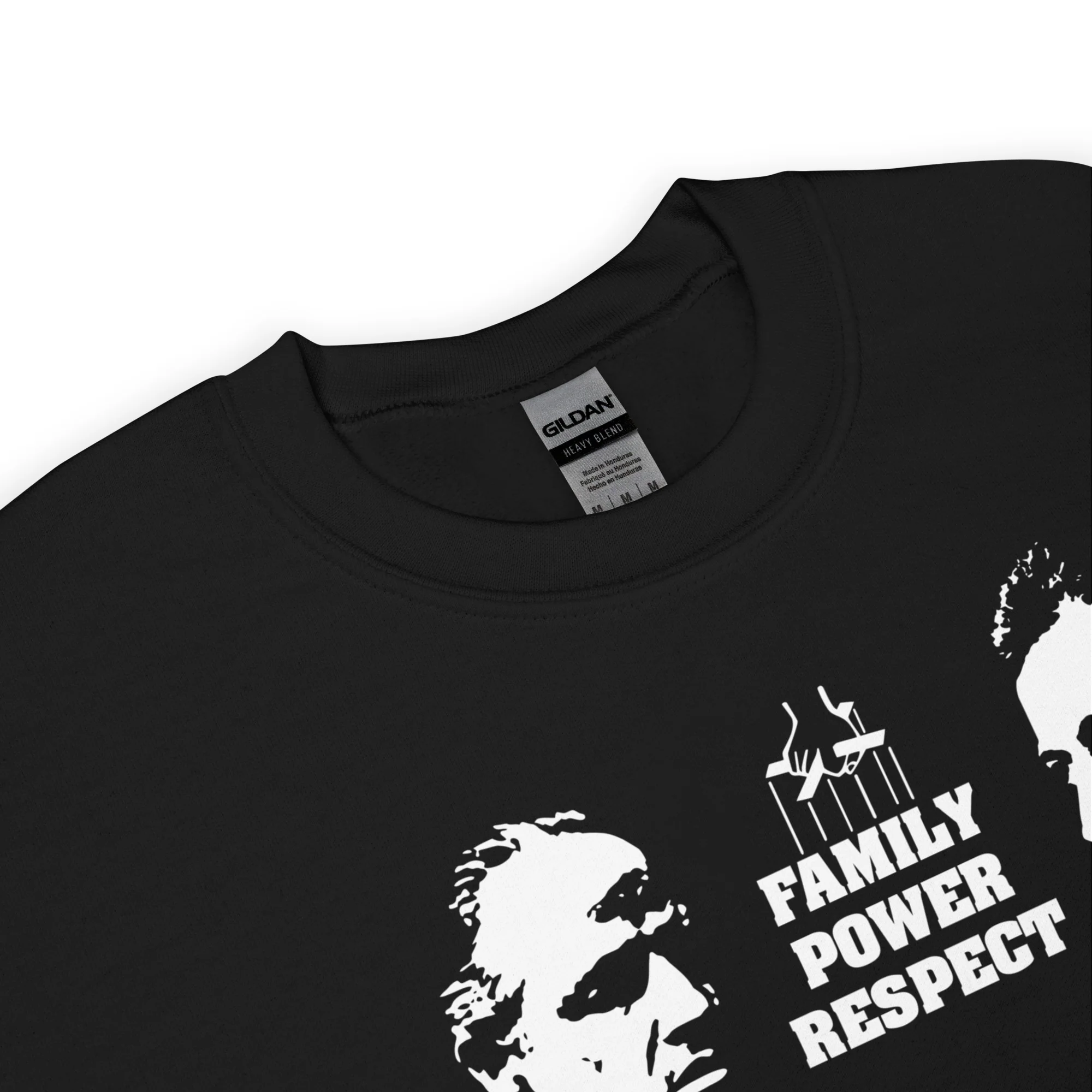 Diseño basado en la película El Padrino con Don Vito y Michael Corleone y sus valores: Familia, Poder, Respeto.