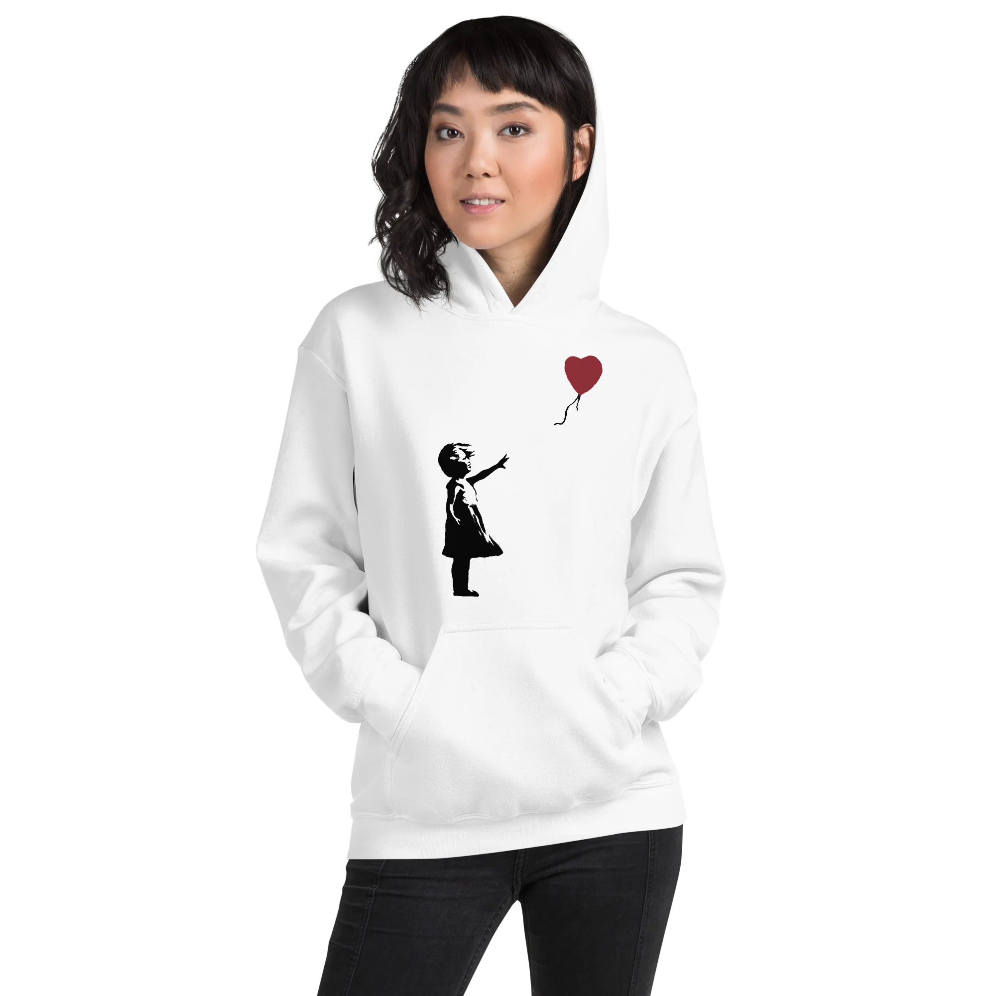 Bonito diseño urbano con una niña tratando de alcanzar un globo con forma de corazón. Cargada de interpretaciones emotivas (algunos ven a la niña perdiendo el globo, mientras que otros la ven a punto de atraparlo) es una alegoría de la esperanza, el amor y la libertad.