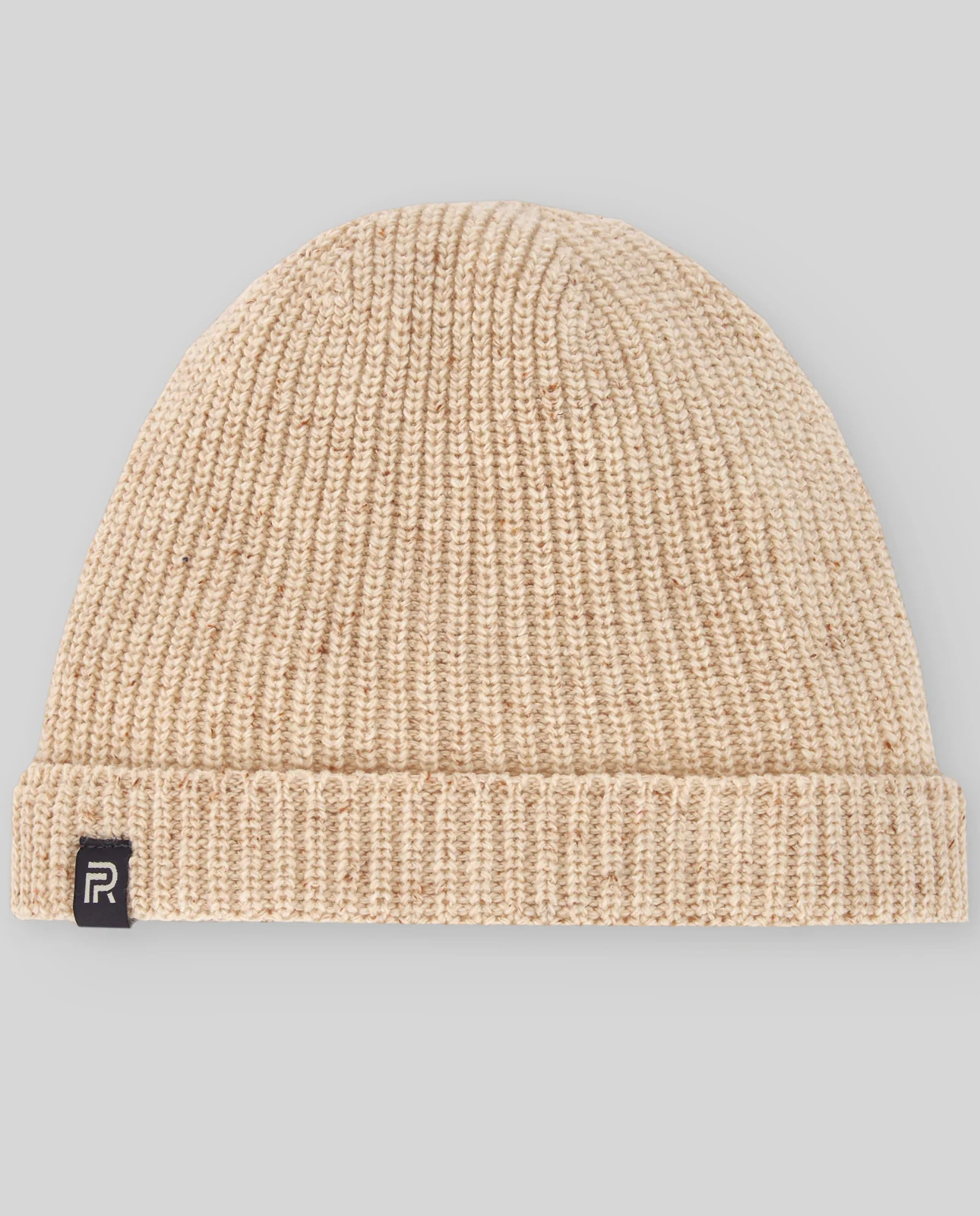 Gorro de punto canalé jaspeado. Acabado con vuelta.