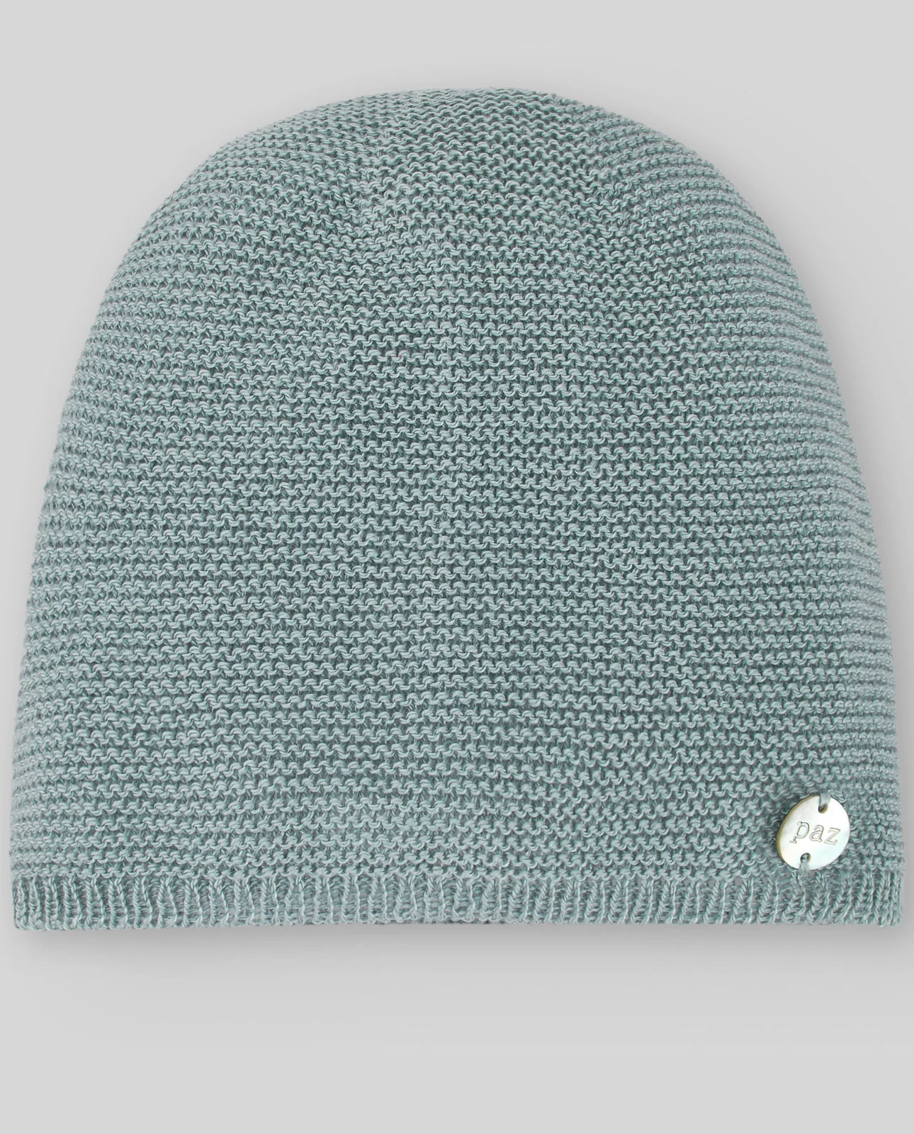 Gorro de punto básico acabado en canalé con placa de nácar.