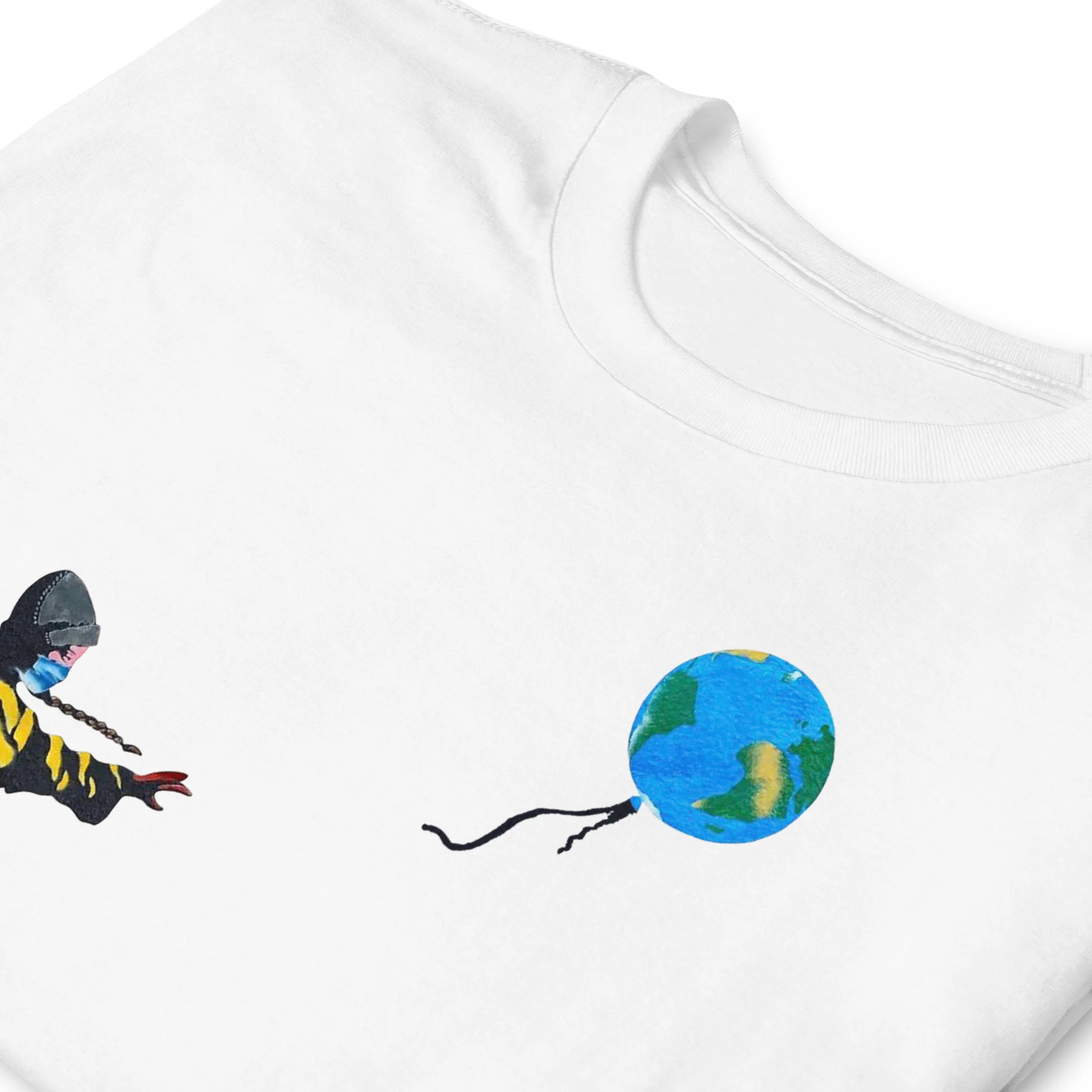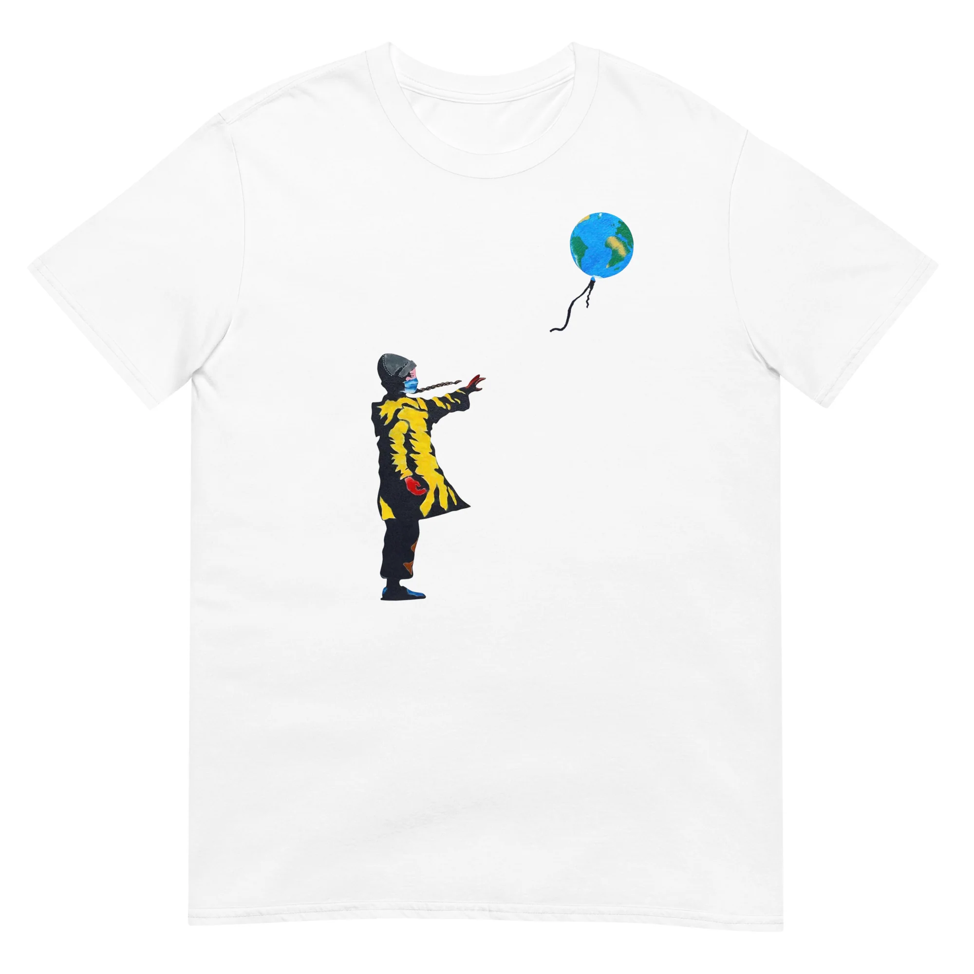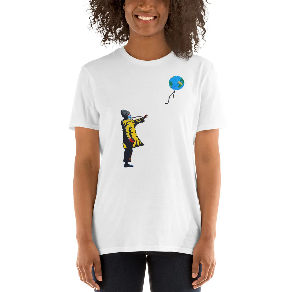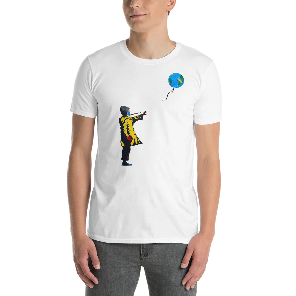 En esta obra de graffiti con Greta Thunberg tratando de alcanzar un globo con forma de la Tierra.