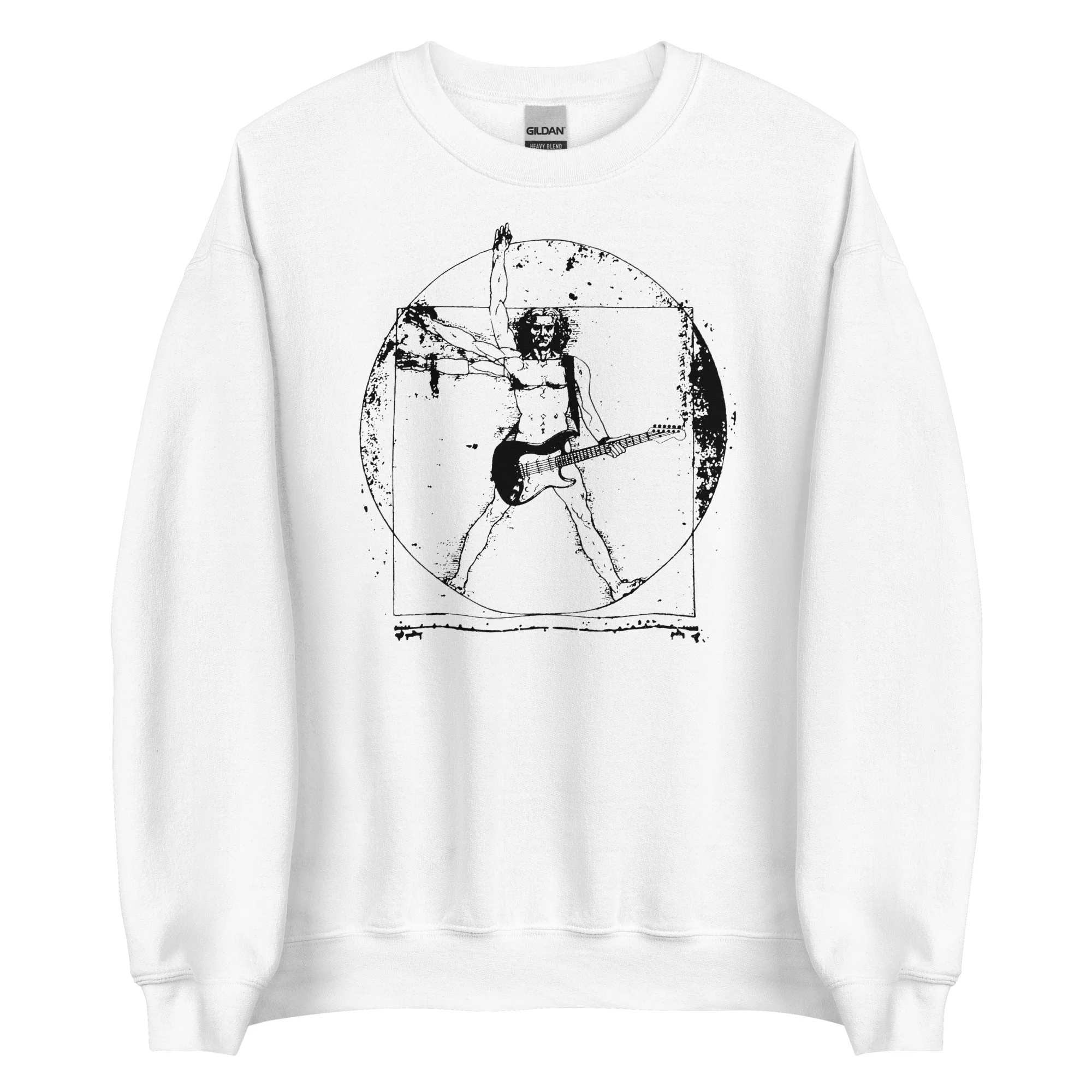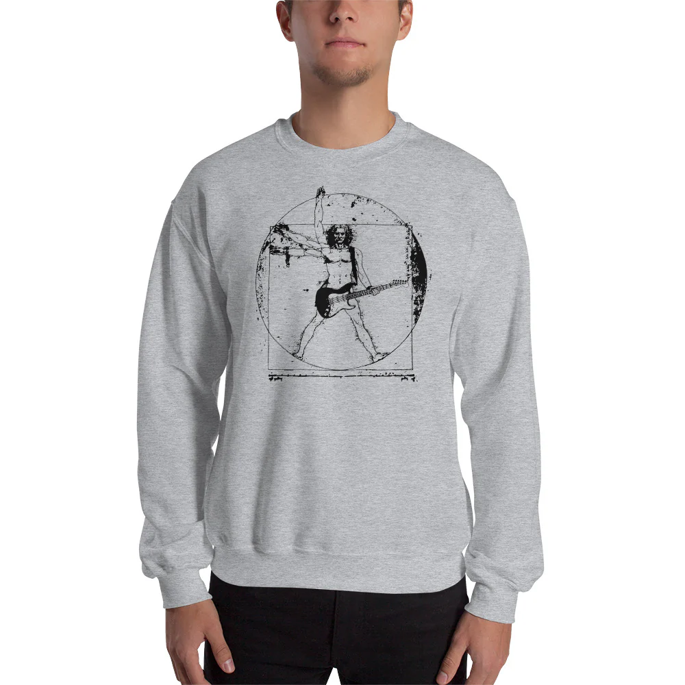 El famoso Hombre de Vitruvio de Leonardo Da Vinci tocando la guitarra eléctrica.