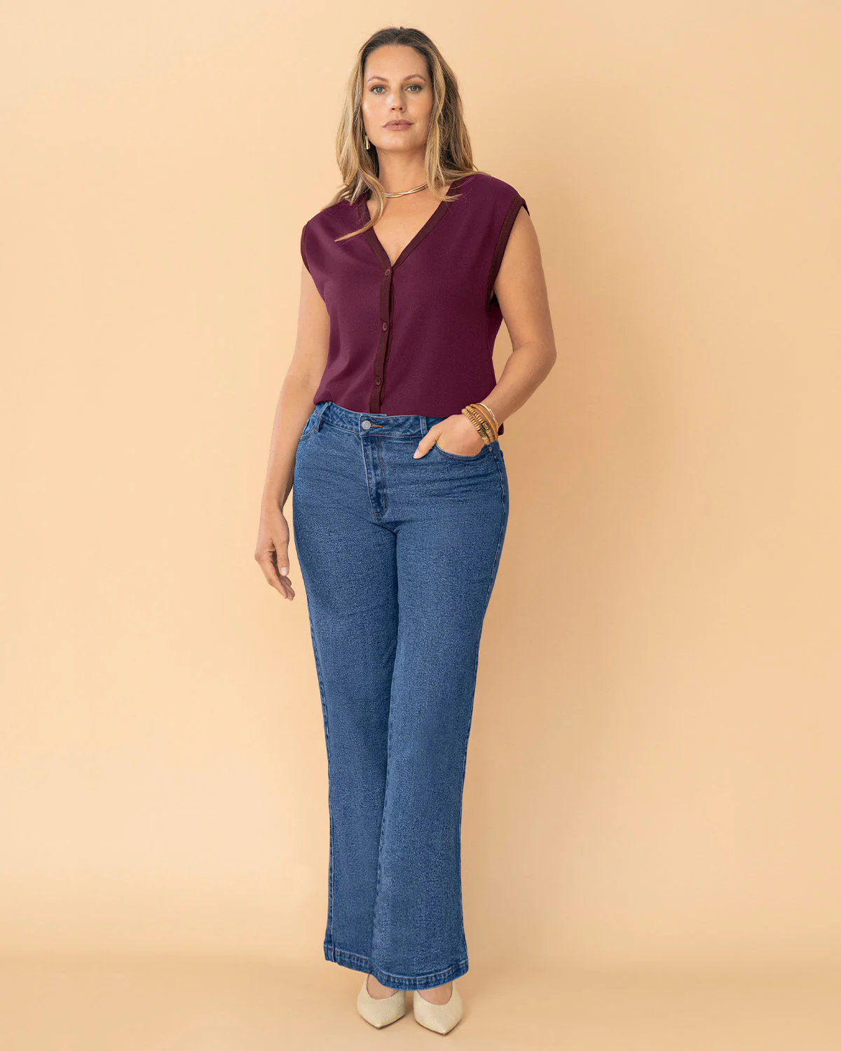 Este jean bota ancha esencial es una silueta clásica que te hará brillar, tanto en el día como en la noche. Su tiro alto te da una horma favorecedora y su silueta semiajustada es ideal para crear looks versátiles y llenos de estilo. ¡Llévalo a todas partes!