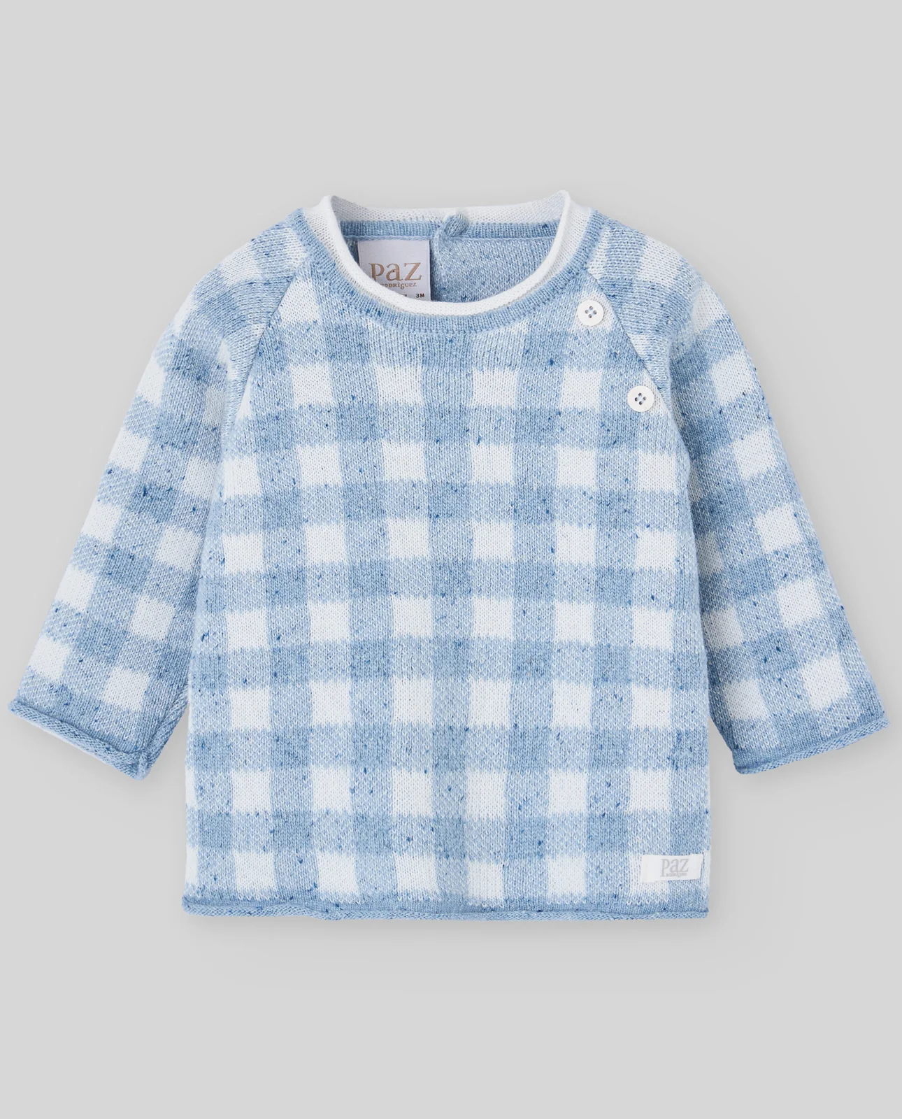 Jersey de cuadros para bebé, con hombro abotonado y cuello redondeado ribeteado.