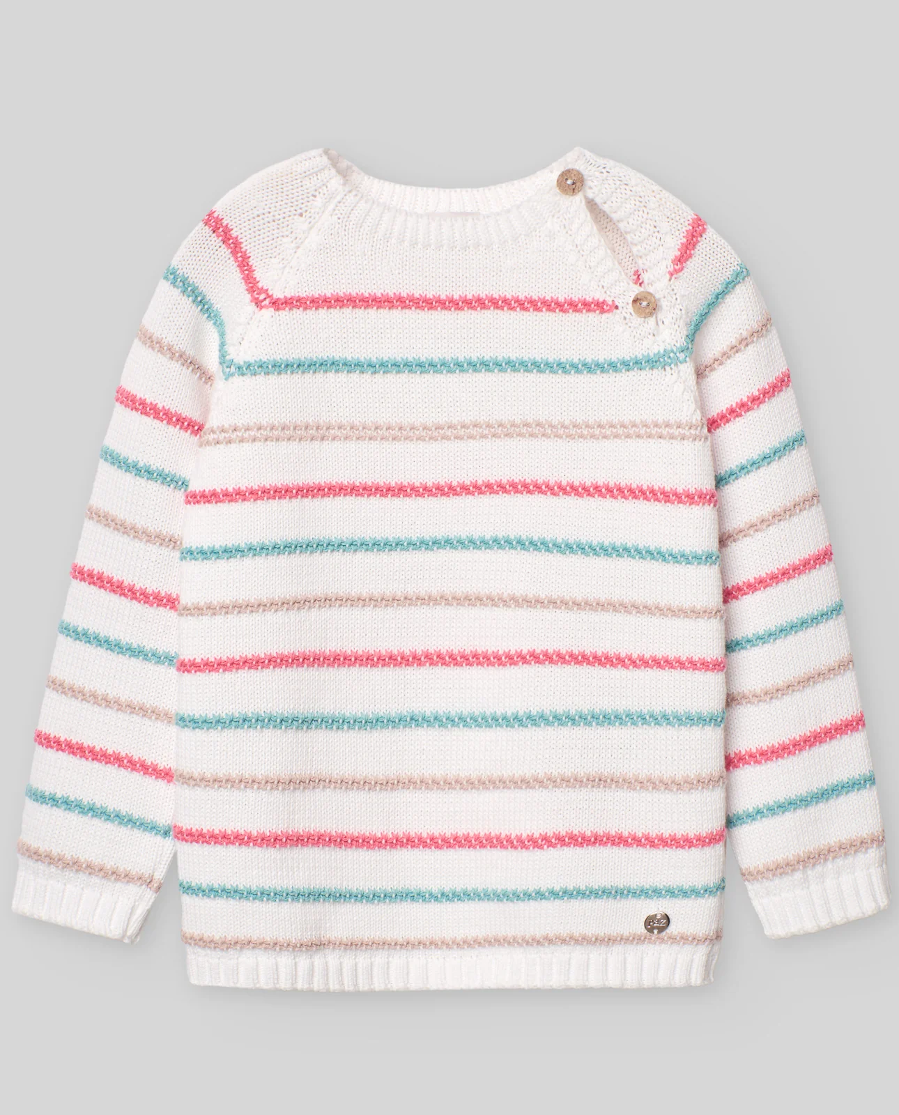 Jersey a rayas en diversos colores, en tonos pastel, ideal para niños. Botonadura lateral para mayor ajuste. Cuello redondo y remates en canalé. Perfecto para coordinar con todos sus looks.