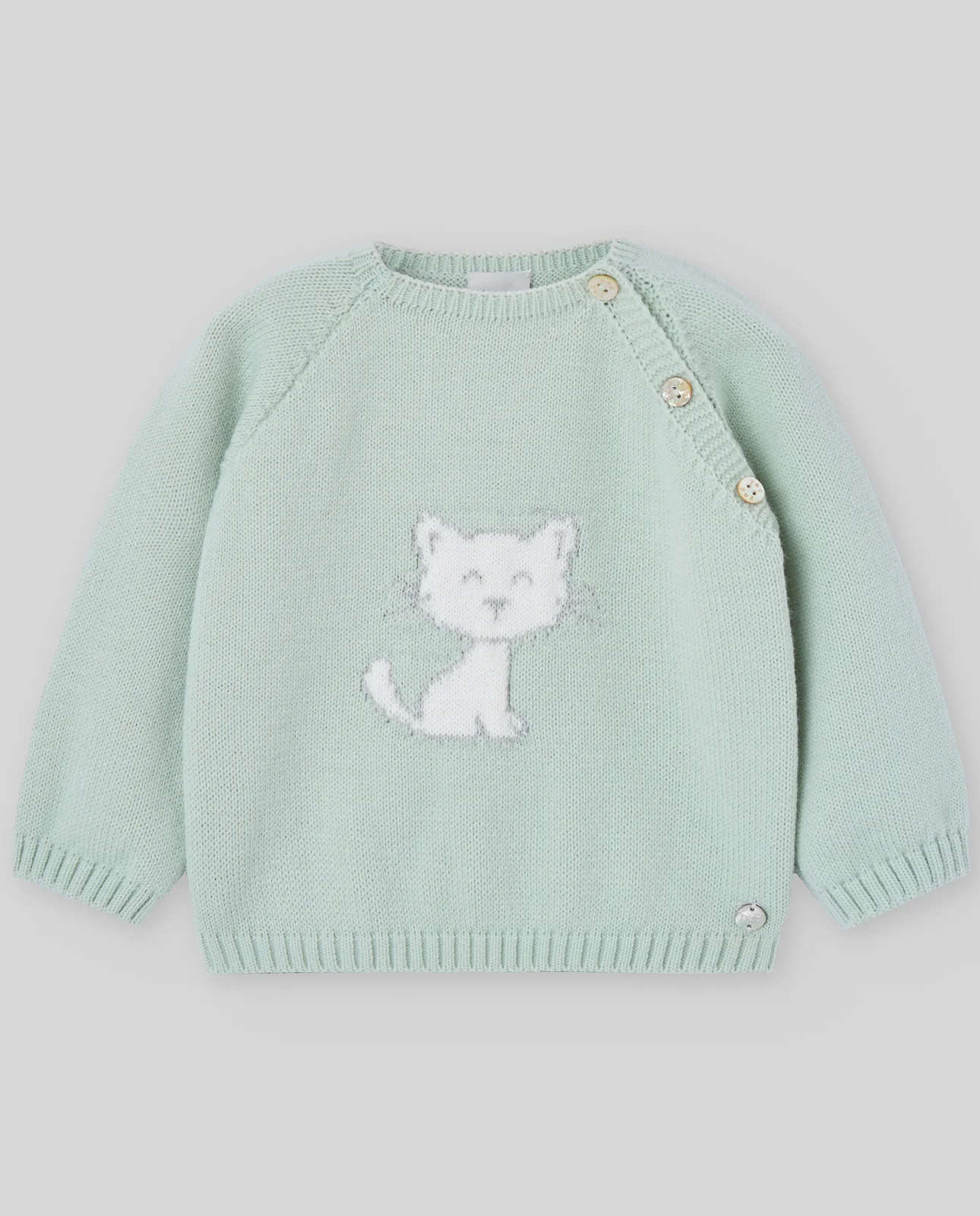 Jersey de punto con motivo central de animalito y cierre con botones decorativos en el hombro.