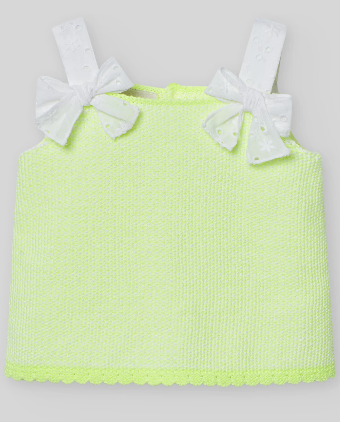 Jubón de niña de tirantes a contraste en batista bordada. Abertura espalda con botones.