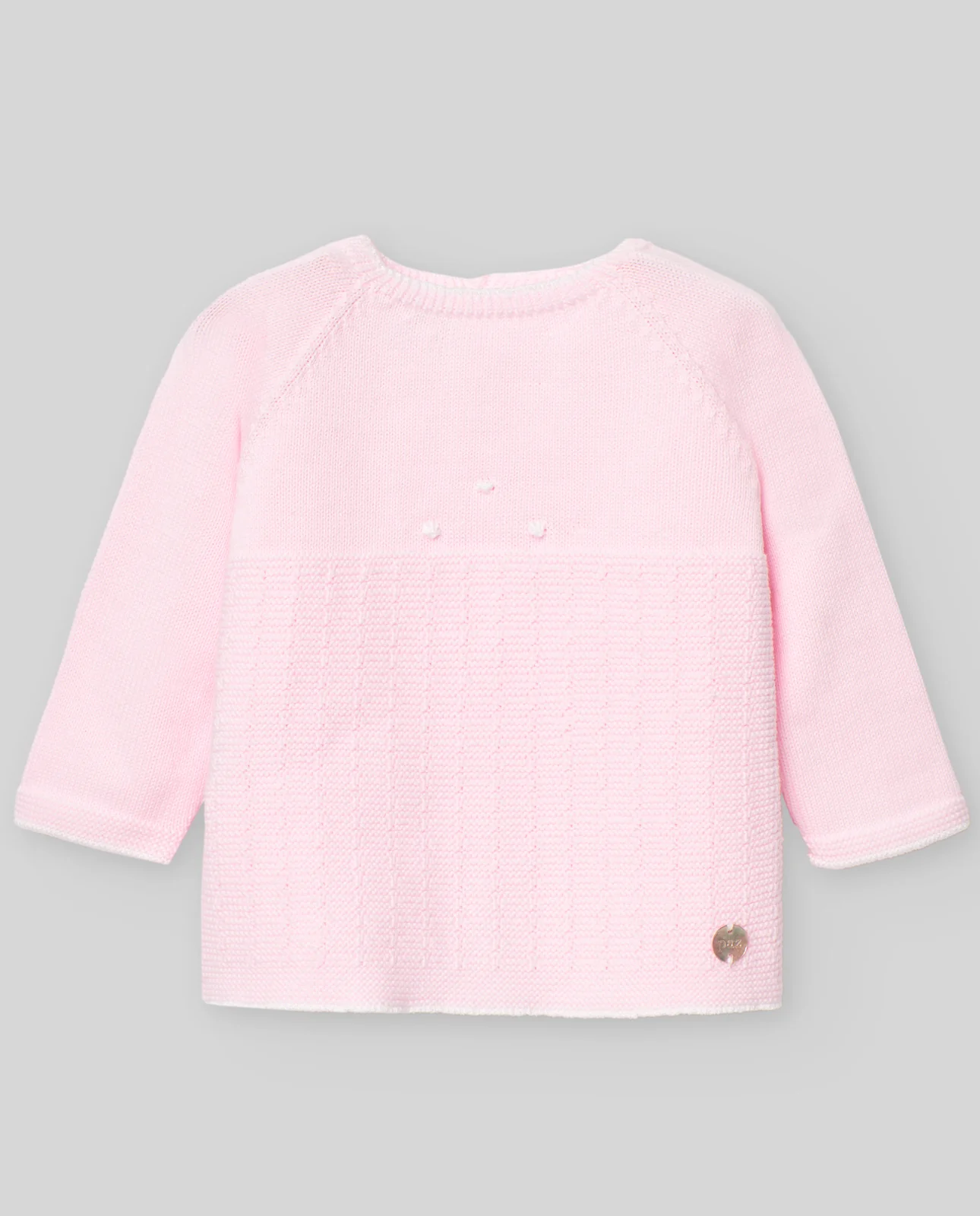 Jubón manga ranglan con punto con motivo geométrico en el delantero y topitos superiores.