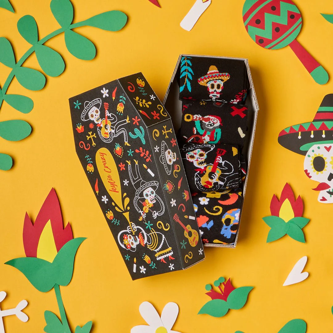 CONTENIDO : 4 pares de padrÃssimos calcetines con distintos motivos de CATRINAS. Confeccionados con Algodón peinado de gran calidad. Para completar el kit incluye una original y exclusiva cajita a juego. Kylie Crazy regalos con corazón 💞🥰