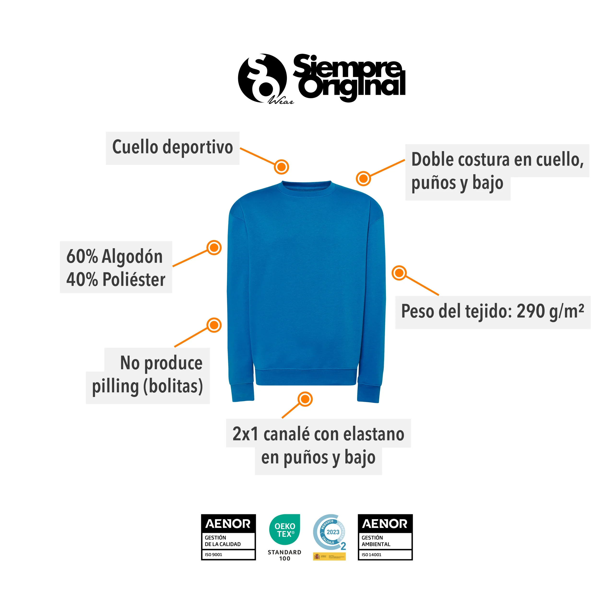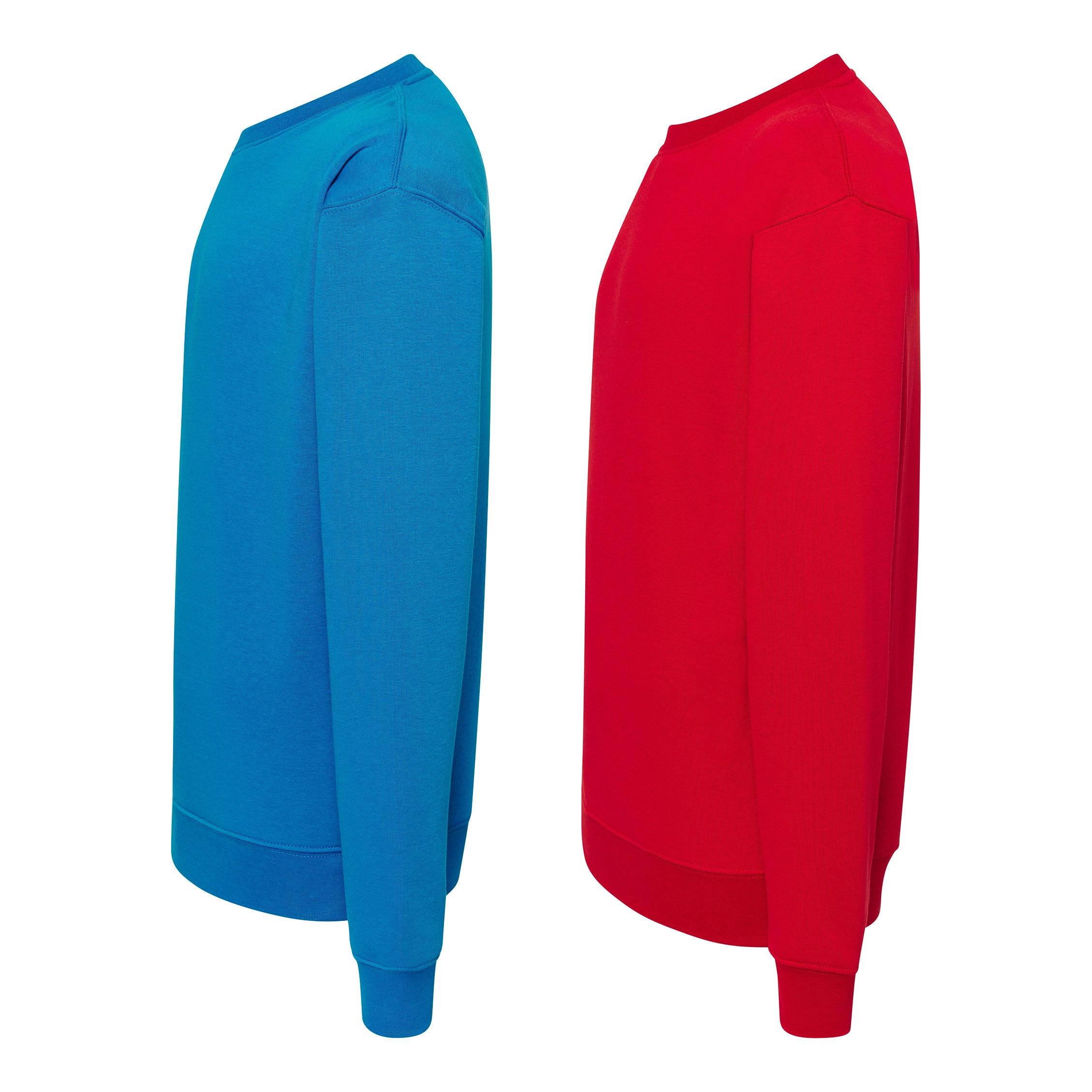 Pack de 2 Sudaderas Básicas de color azul y rojo. Aseguramos que nuestras sudaderas no generan pilling (bolitas). Doble costura en cuello, puños y bajo.