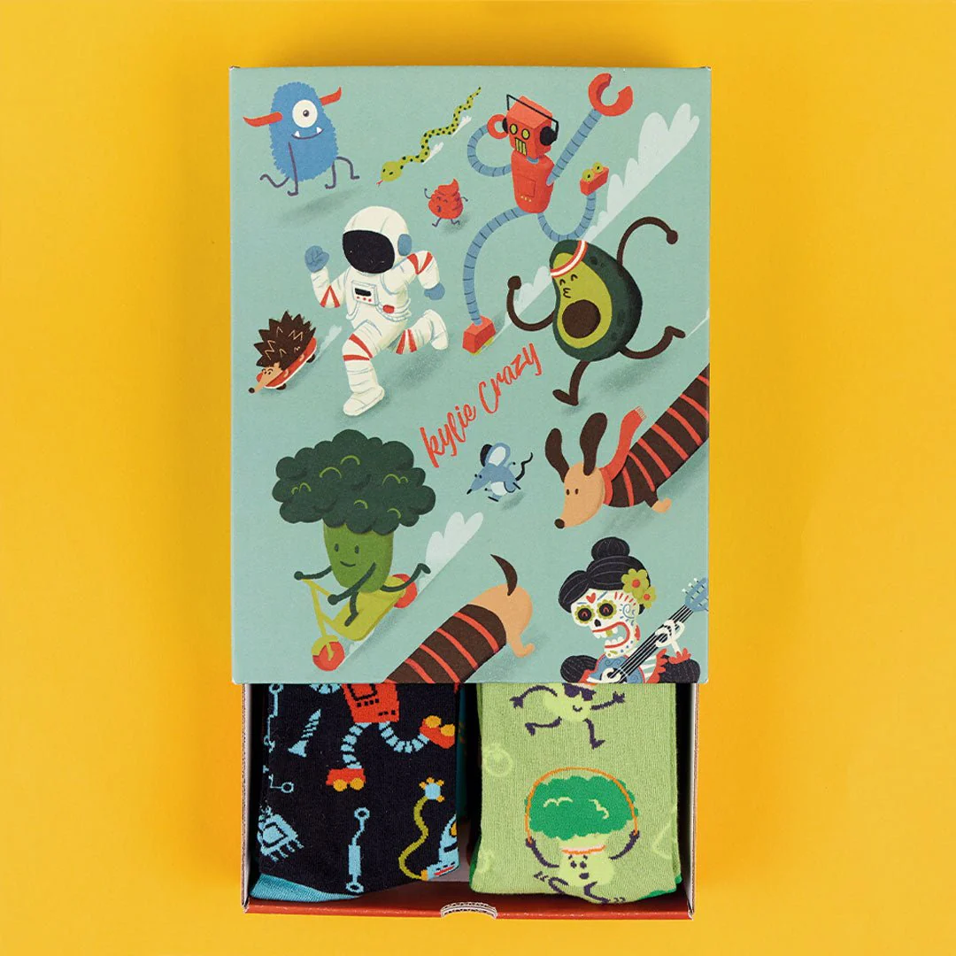 Cada diseño es una explosión de color y comodidad, presentado en una caja de cerilla con print siendo el combo ideal para regalar🎨✨.