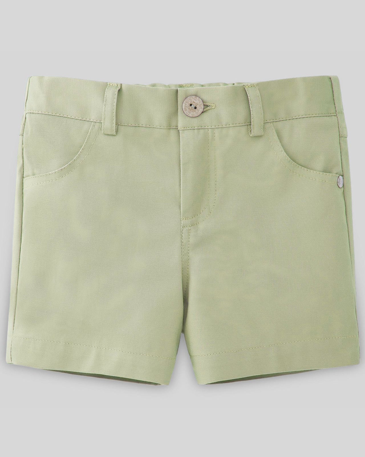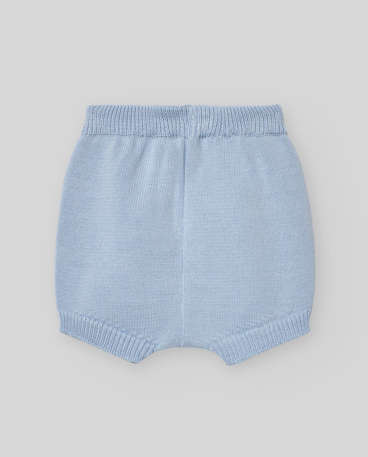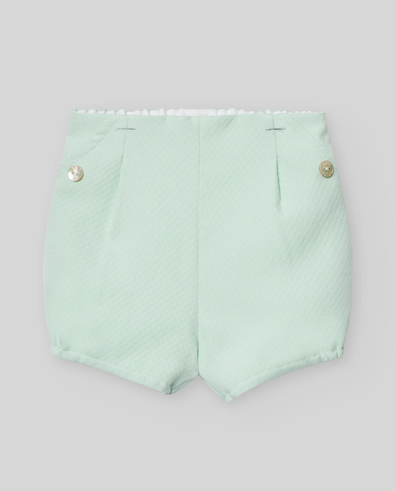 Pantalón corto de piqué con goma en lateral de la pierna tipo bombacho y botones decorativos en laterales.
