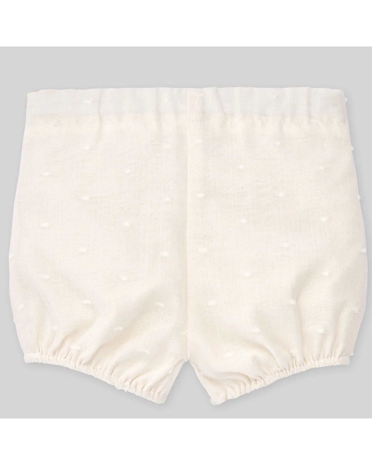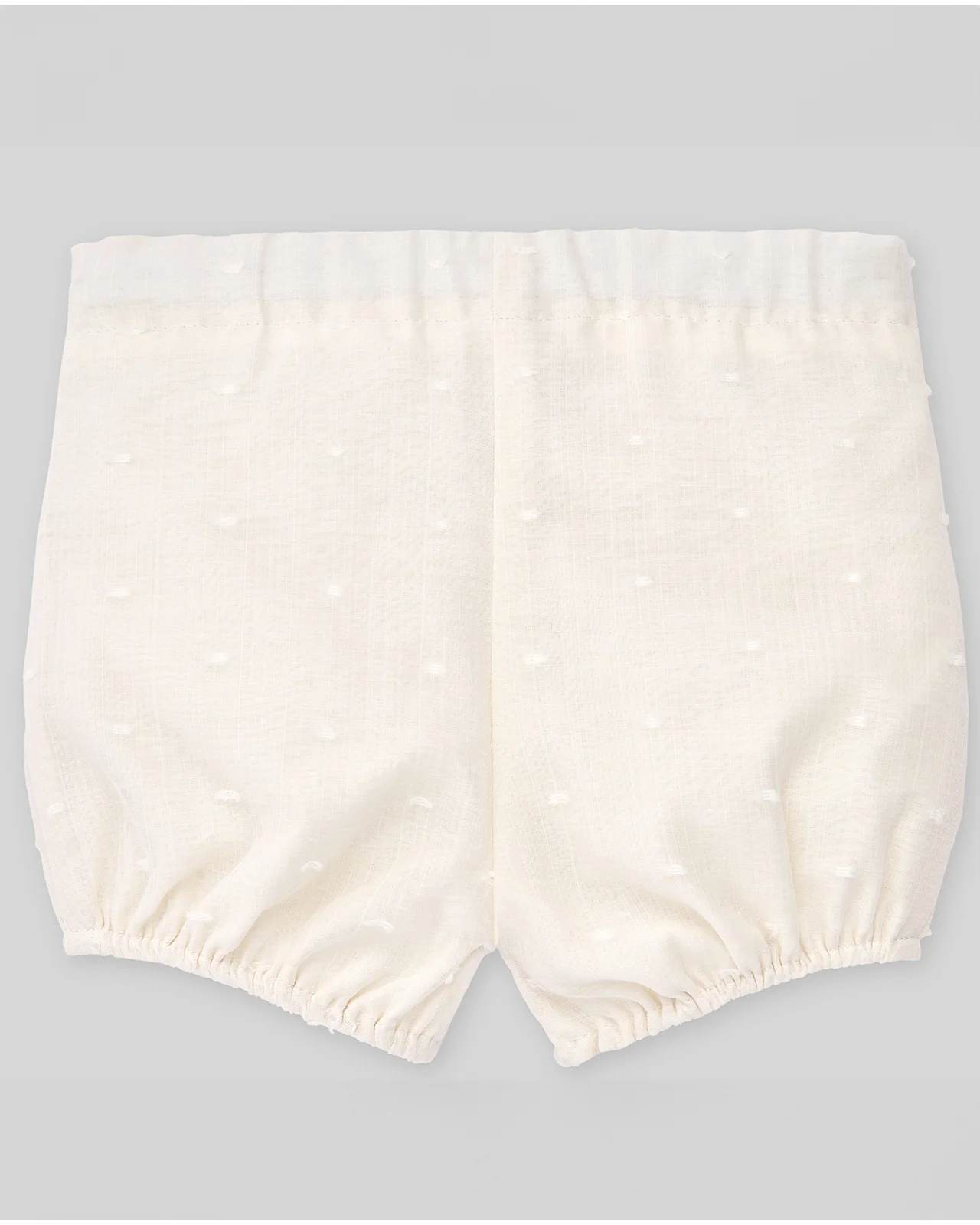 Pantalón corto en tejido plumeti para bebé niño de 1 a 24 meses, con botones de nácar delanteros para coordinar con la blusa de la colección. Ideal para ceremonia o eventos especiales. Goma en la pierna y cintura para mayor confort y ajuste.