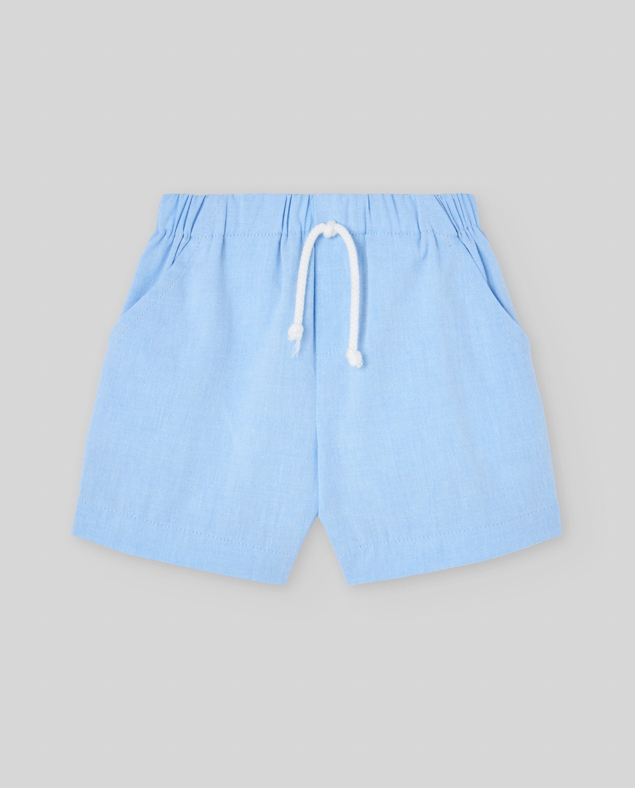 Pantalón corto para niño en tejido liso con cintura elástica y cordón decorativo. Una prenda cómoda y versátil, perfecta para los looks informales del verano.