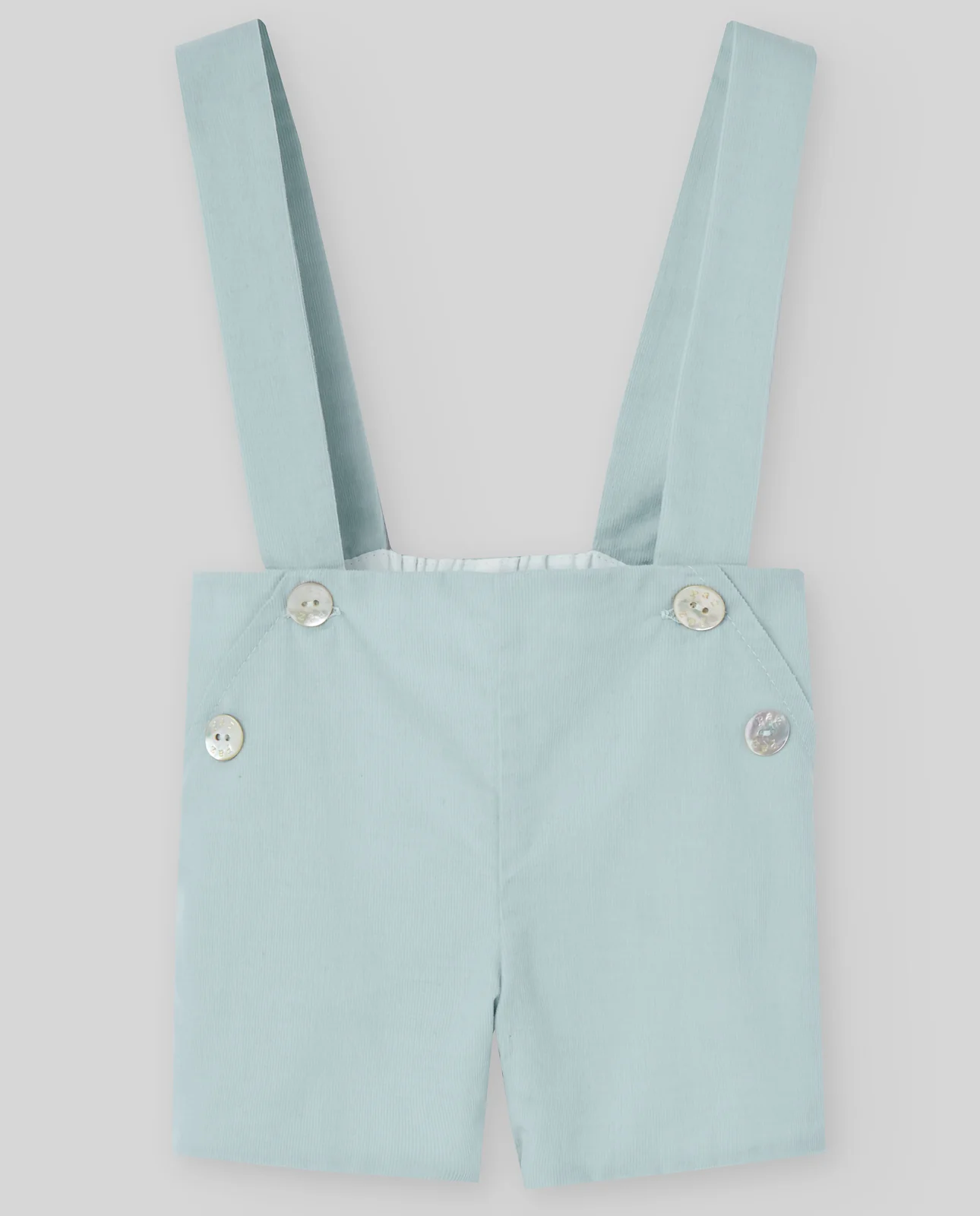 Pantalón corto de micropana con tirantes. Goma en la cintura y botones en el delantero. Estilo retro de la colección SEMILLA.