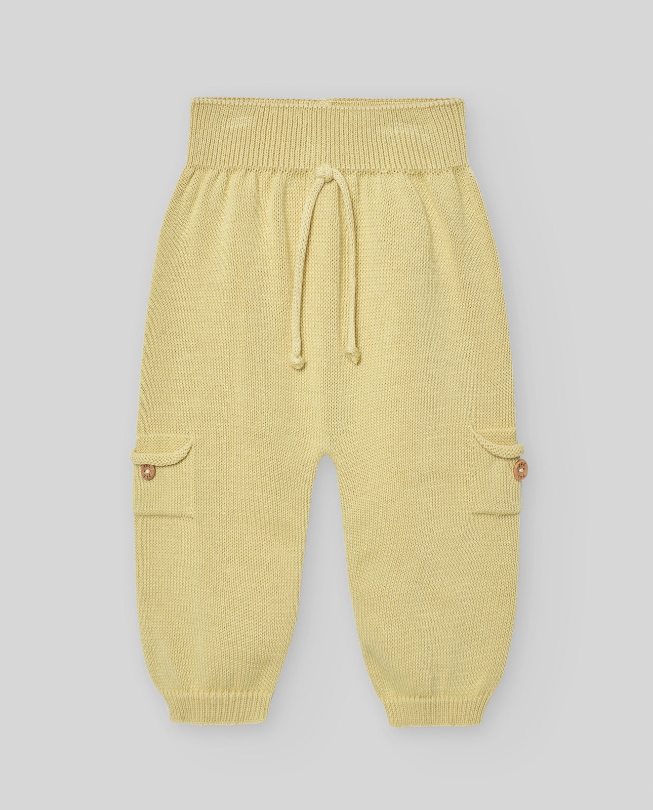 Pantalón largo de punto tipo cargo con cintura ancha y bolsillos laterales.