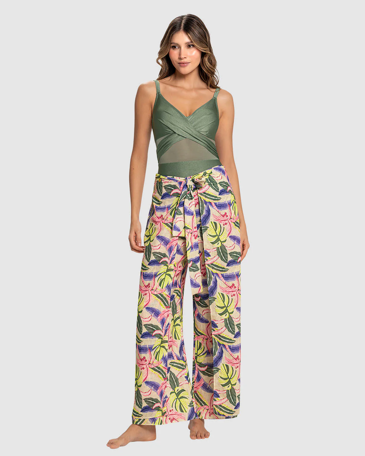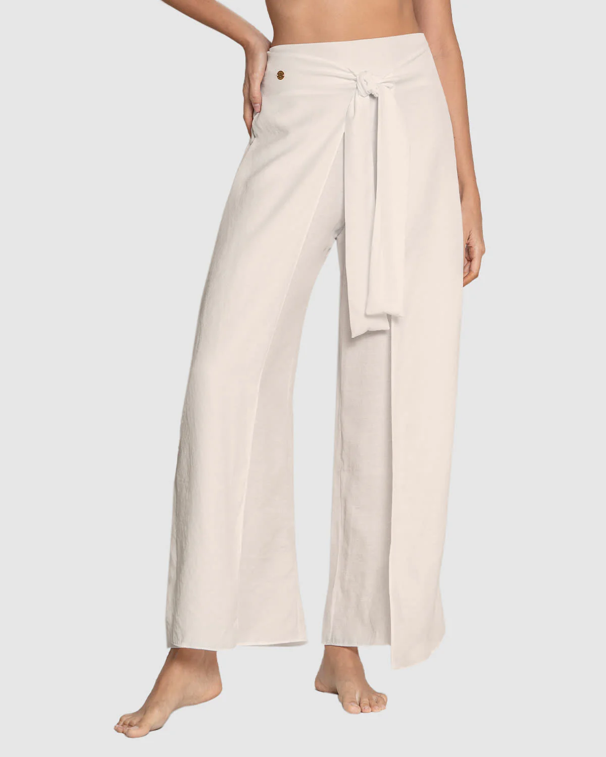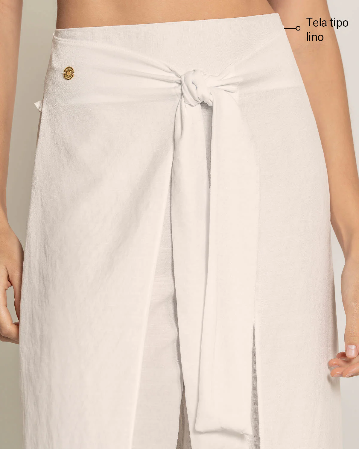 Estilo, cubrimiento y versatilidad en una misma prenda. Este pantalón puedes usarlo como salida de baño o como prenda exterior. Se adapta a tu cuerpo gracias al elástico tipo nido de abeja en espalda. Es de silueta holgada y sus capas de tela adicionales en el frente son anudables en el abdomen, dándole más vuelo y un toque diferenciado y sofisticado al pantalón. Su material es tipo lino para llenará de elegancia tus looks.