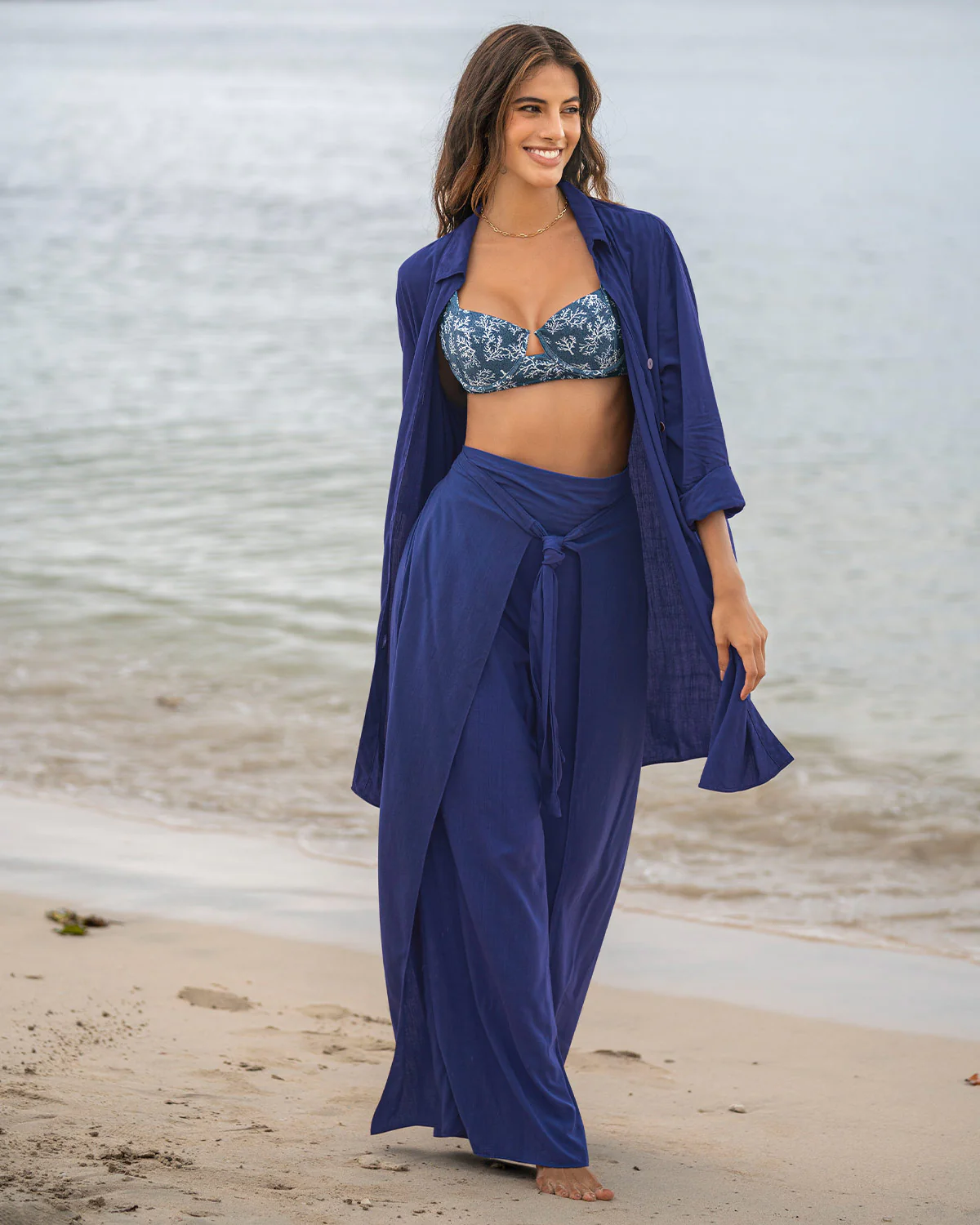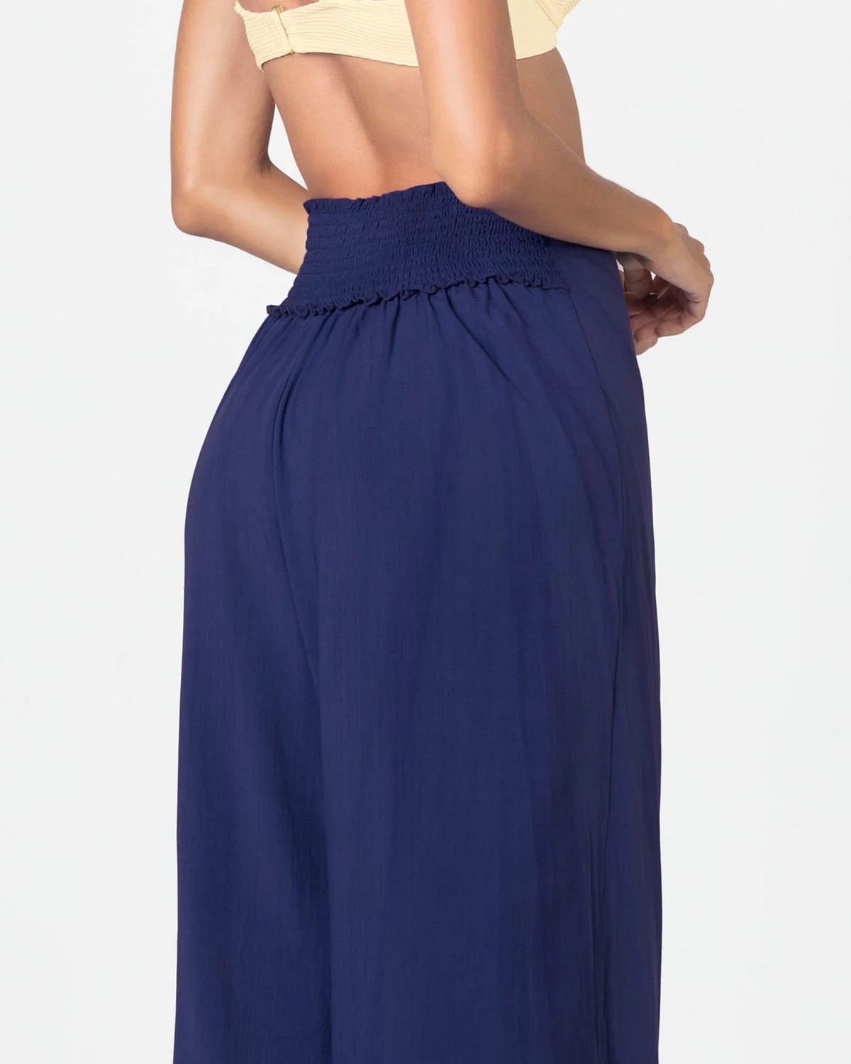 Este pantalón es la prenda que elevará todos tus looks de playa y hará que te veas muy chic. Algo que te encantará es que es muy fresco y también puedes adaptarlo a tus outfits exteriores. Además, cuenta con elástico tipo nido de abeja en la parte de atrás, que no solo te da comodidad y un ajuste ideal, sino que también aporta un toque romántico y femenino. Llévalo a tus próximas vacaciones, ¡tus días de verano no pueden esperar por este pantalón tipo lino con tiras anudables en frente!