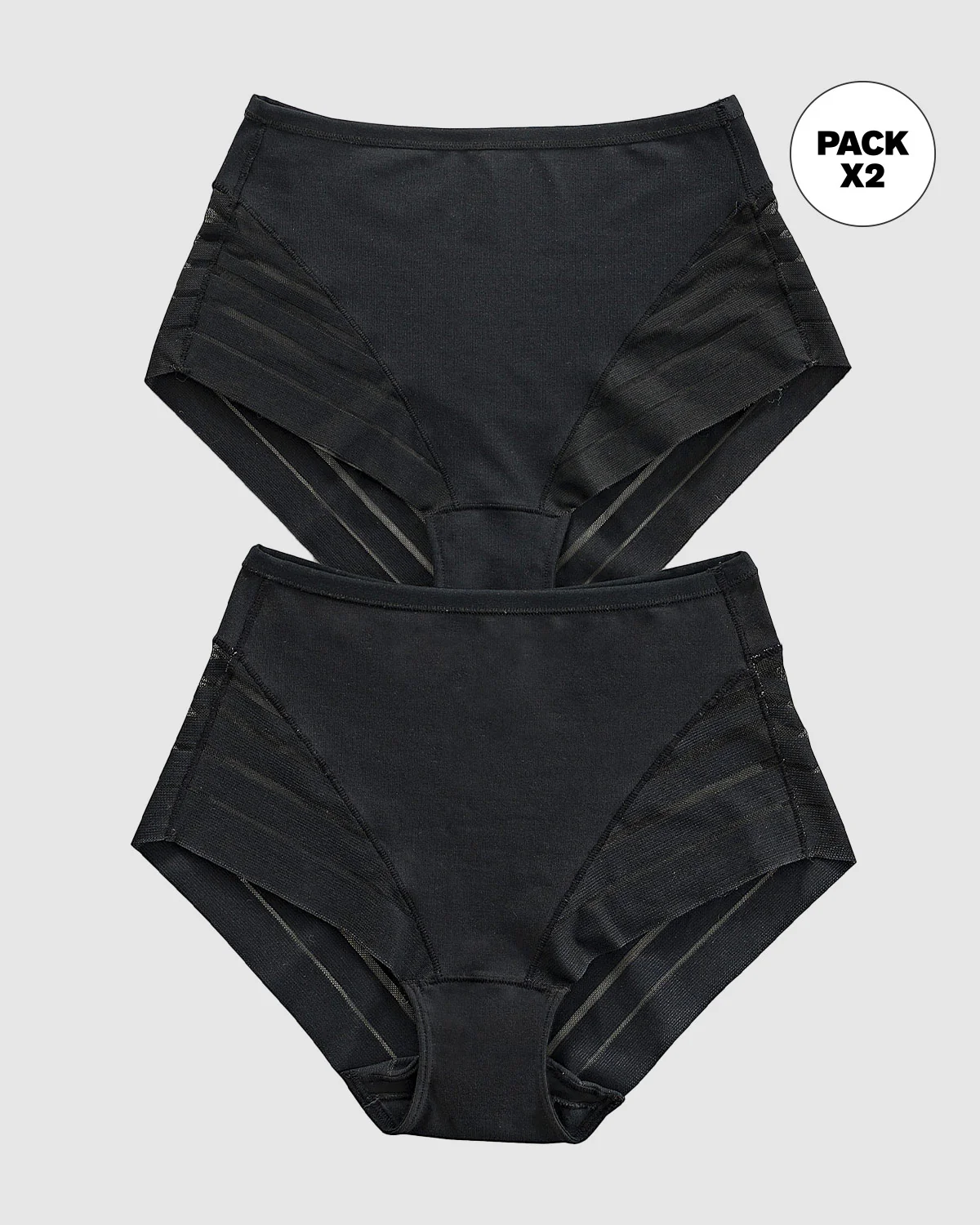 Este panty faja clásico de tiro alto en paquete x 2, controla tu abdomen y moldea tu figura. Al ser tiro alto tiene muy buen cubrimiento del abdomen bajo y te hará sentir que todo está en su lugar. Cuenta con encaje con diseño en bandas, en los laterales y glúteos, que le dan un toque femenino y muy sexy, además sus costuras son ultraplanas para una apariencia imperceptible bajo la ropa. Gracias a su comodidad vas a querer uno para cada día ¡y qué mejor que un paquete x 2!