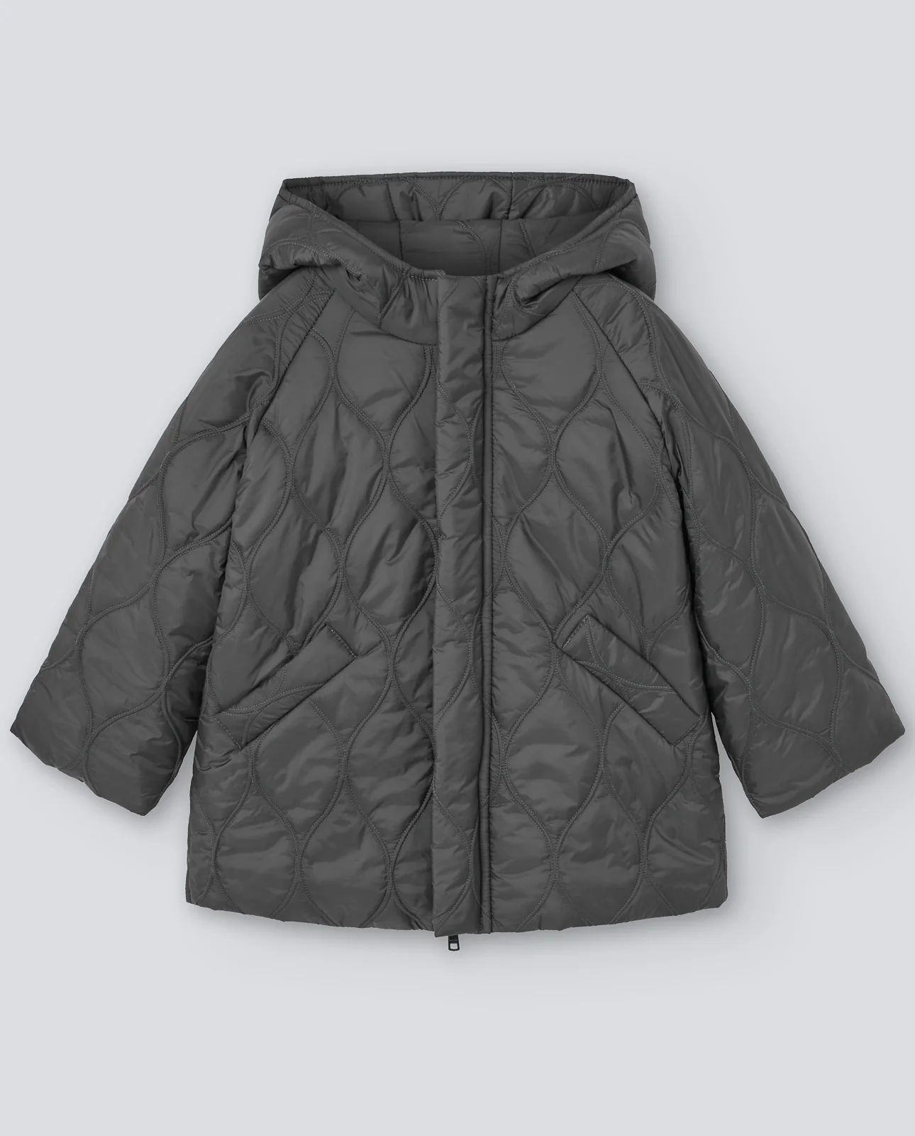 Parka infantil acolchada con capucha, en tejido técnico con diseño acolchado de ondas, cálida y ligera para el uso diario.