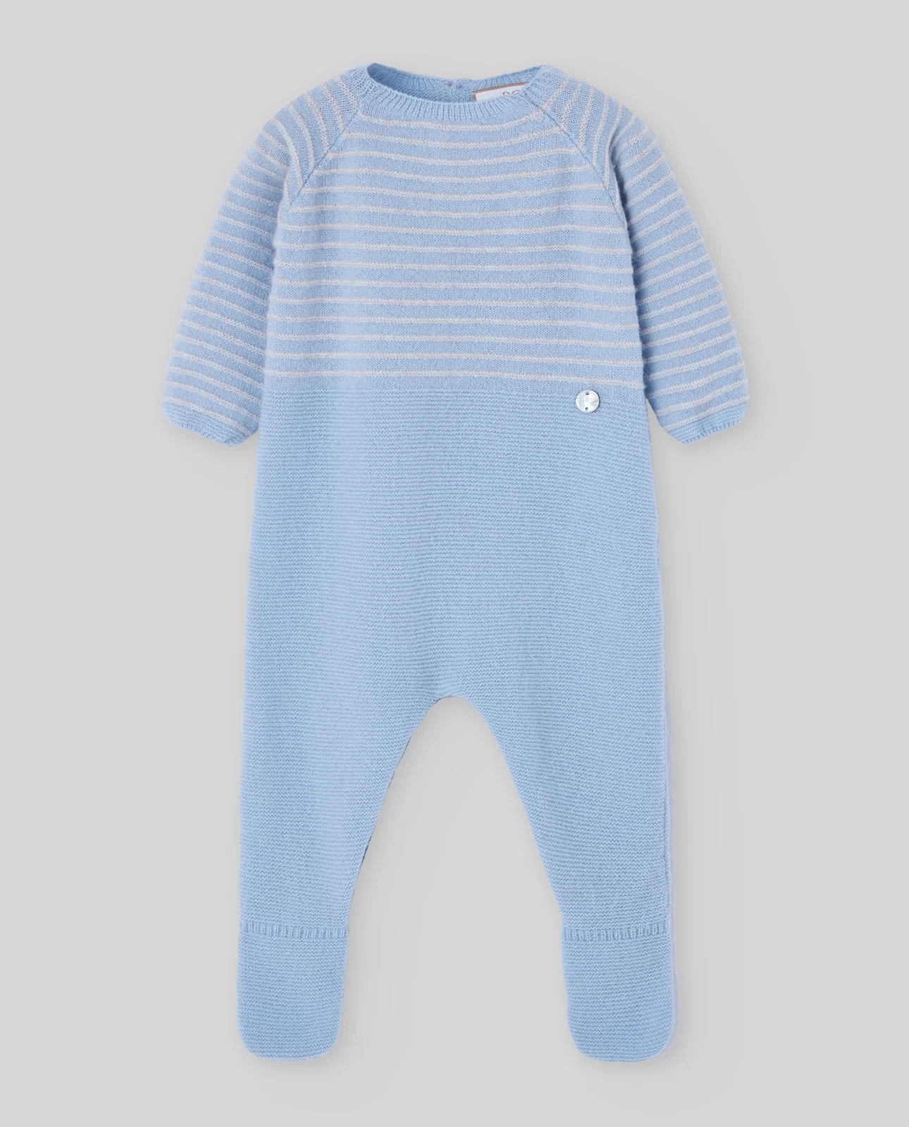 Pelele largo con pie en punto de lana y cashmere con diseño de rayas. Ideal para bebé, combina funcionalidad y estilo en una sola prenda.